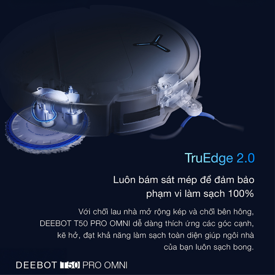 Tích hợp công nghệ Quét laser 3D định vị hệ thống hiển thị bản đồ toàn bộ ngôi nhà. Chốt quét: 2 chiếc Tự động quay về dock sạc, leo dốc 3cm. Thời gian sạc