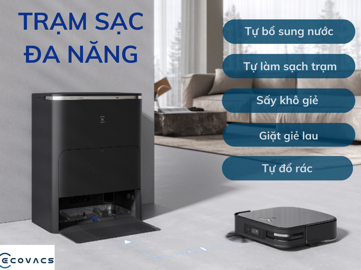 - Đặc biệt, trạm sạc sẽ dùng nước nóng để giặt sạch giẻ lau nhằm đảm bảo giẻ lau không sản sinh nấm mốc, gây ảnh hưởng đến sức khỏe gia đình. Công nghệ hút, bộ lọc, công suất và độ ồn