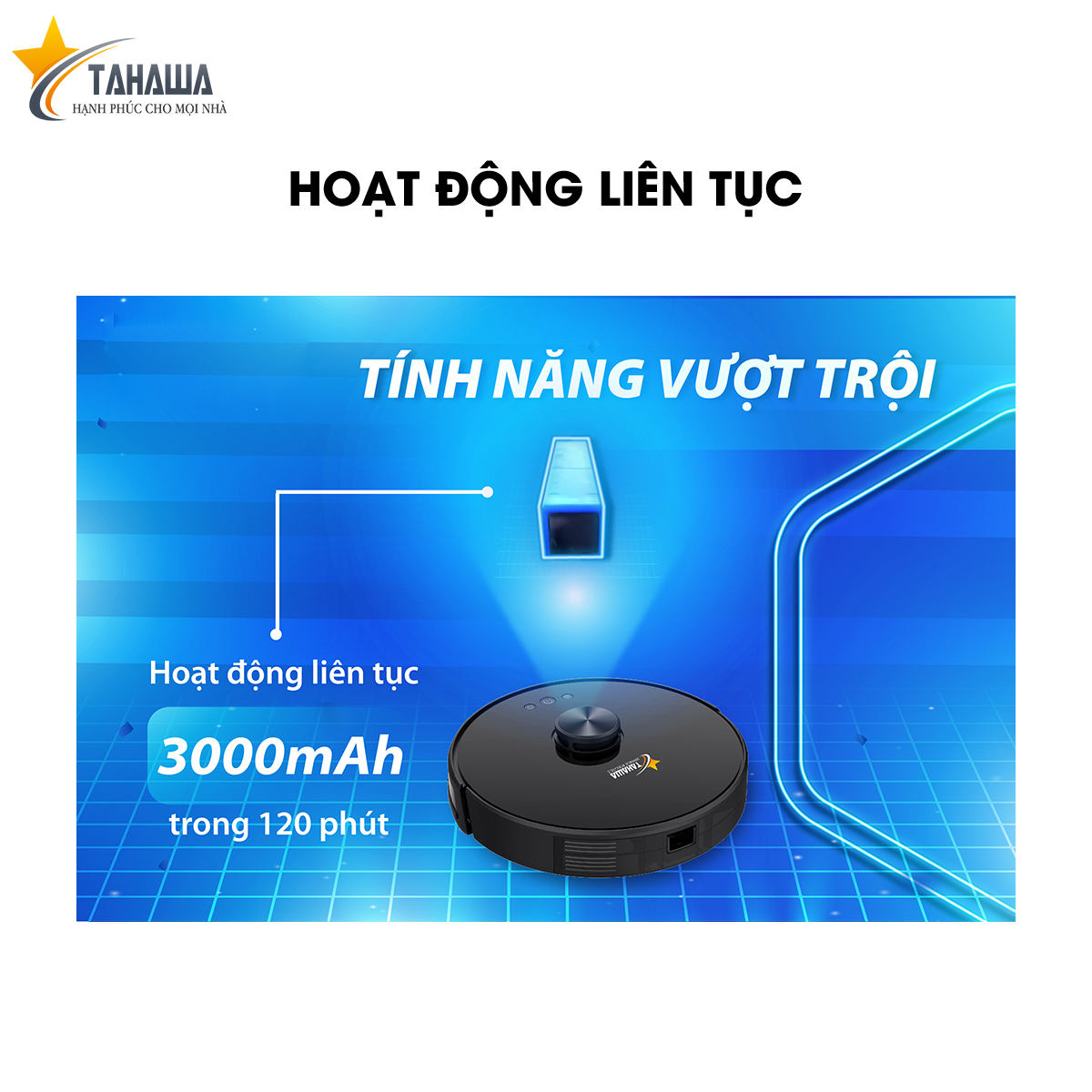 Robot hút bụi lau nhà TAHAWA TH-07XR- Lực hút: 4000Pa- Pin: 3000mAh -Tích hợp 3 trong 1: hút, quét, lau - Bảo hành chính hãng 12 tháng, 1 đổi 1 trong 15ngày THÔNG SỐ KỸ THUẬT TH-07XR sở hữu cho mình Công nghệ dẫn đường Laser 360 độ tiên tiến LDS LiDAS và thuật toán SLAM – thuật toán hàng đầu để phác thảo chi tiết bản đồ địa hình căn phòng và xác định chính xác vị trí khu vực làm việc. Bản đồ này sẽ bao gồm chu vi hoạt động, các vật cản có trong căn phòng, các vị trí cửa ra vào, cầu thang, nhà vệ sinh… Từ đó Robot sẽ tiến hành dọn dẹp căn phòng theo bản đồ làm việc mà quét laser thu được. Chính vì vậy TH-07XR có thể thiết lập quy trình hoạt động nhanh chóng, làm sạch từng không gian trong căn nhà của mình. Hàng nhập khẩu chính hãng TH-07XR có khả năng tự động quay về trạm sạc khi máy gần hết Pin. Điều này là rất cần thiết, đảm bảo máy luôn đầy Pin cho các lần làm việc tiếp theo.Hàng nhập khẩu chính hãng Robot hút bụi TH-07XR sở hữu cho mình ứng dụng quản lý rất dễ sử dụng, có thể hỗ trợ điều khiển bằng giọng nói trợ lý ảo Google, Amazon Alexa. Tahawa TH-07XR có thể sử dụng App Smart Life điều khiển Tiếng Việt, có đầy đủ các tính năng như hẹn giờ, thiết lập tường ảo,… dễ dàng sử dụng cho mọi thành viên trong gia đình.Hàng nhập khẩu chính hãng Ngoài ra máy có khả năng vượt các loại vật cản lên tới 2cm, điều đó sẽ giúp TH-07XR có khả năng làm sạch mọi ngóc ngách trong ngôi nhà bạn. KHẢ NĂNG HÚT THÔNG MINH CỦA TH-07XR Với công nghệ Laser 360 độ cùng thuật toán SLAM, TH-07XR có thể nhanh chóng đưa ra lộ trình làm sạch và thực hiện dọn dẹp với hiệu quả cao nhất, ít tốn thời gian nhất. Hàng nhập khẩu chính hãng TH-07XR có khả năng điều chỉnh lực hút linh hoạt với 3 mức lực hút khác nhau: tiết kiệm, thường, khỏe để phù hợp với nhu cầu làm sạch của từng khách hàng. Tùy theo mức độ bẩn của mặt sàn, mà người dùng có thể điều chỉnh chế độ hút cùng lực hút sao cho phù hợp. CHẾ ĐỘ LÀM SẠCH ĐA DẠNG Chế độ làm sạch: tự động làm sạch, làm sạch góc cạnh, làm sạch tại điểm, dọn dẹp thủ công, robot hút bụi Tahawa TH-07XR hứa hẹn sẽ đem lại cho bạn những trải nghiệm tuyệt vời và là sự lựa chọn đúng đắn so với các mẫu robot hút bụi trong tầm giá. Hàng nhập khẩu chính hãng Thông số PIN của model TH-07XR được hãng Tahawa đưa ra là 3000mAh, đảm bảo robot hút bụi hoạt động tối đa 130 phút trong 1 lần sạc. Phù hợp với đại đa số nhu cầu sử dụng của khách hàng tại thị trường Việt Nam.  CHÍNH SÁCH BẢO HÀNH Tahawa Đã Được Cấp Bảo Hộ Thương Hiệu Tại Cục Sở Hữu Trí Tuệ Việt Nam Những năm qua, Tahawa vẫn luôn khẳng định vị trí dẫn đầu của mình và được nhà nước chứng nhận, vinh danh với những mốc sự kiện to lớn.  Tháng 6/2023 vừa qua, thương hiệu Tahawa vinh dự được Cục Sở Hữu Trí Tuệ Việt Nam trao tặng chứng nhận và khẳng định nhãn hiệu trên thị trường. Tăng cường việc quảng bá thương hiệu đồng thời ngăn ngừa nguy cơ làm giả nhãn hiệu sản phẩm.  Mỗi sản phẩm Tahawa phân phối ra thị trường đều được khách hàng tin dùng mạnh mẽ bởi sự bền bỉ và tiện ích cũng như chính sách hậu mãi tốt nhất cho khách hàng.  Để được Cục Sở Hữu Trí Tuệ Việt Nam công nhận không phải là chuyện đơn giản mà đó là cả quá trình suốt 14 năm cố gắng không ngừng của Tahawa. Nhằm để tổng hợp lại từng chặng mà Tahawa đã đi qua mời các bạn hãy click vào link bên dưới để xem chi tiết:  Tahawa Đã Đăng Ký Bảo Hộ Thương Hiệu Tại Cục Sở Hữu Trí Tuệ Việt Nam Không chỉ là thương hiệu được các gia đình Việt tin dùng mà TAHAWA còn được nhiều người thợ chuyên nghiệp, đối tác lớn tin tưởng hợp tác như: + HYUNDAI + HINO + Công ty cổ phần FPT… + Công Ty TNHH Kiến Trúc-Xây Dựng-Trang Trí Nội Thất Đoàn Gia Phát,…   Bảo hộ nhãn hiệu Tahawa sẽ khẳng định xuất xứ, nguyên liệu, vật liệu, cách thức sản xuất hàng hóa, cách thức cung cấp dịch vụ, chất lượng, độ chính xác, độ an toàn cho các sản phẩm mang nhãn hiệu Tahawa. Giúp cho thương hiệu Tahawa đảm bảo được uy tín về mọi mặt. Khiến người tiêu dùng yên tâm hơn khi lựa chọn sử dụng. Giải thưởng TAHAWA đạt được