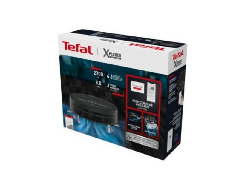 Giới thiệu sản phẩm Máy hút bụi Tefal Robot RG8275WH- Đen - Máy có thể hút liên tục lên đến 150 phút - Tự động sạc nhờ bộ sạc kèm theo - Cảm biến