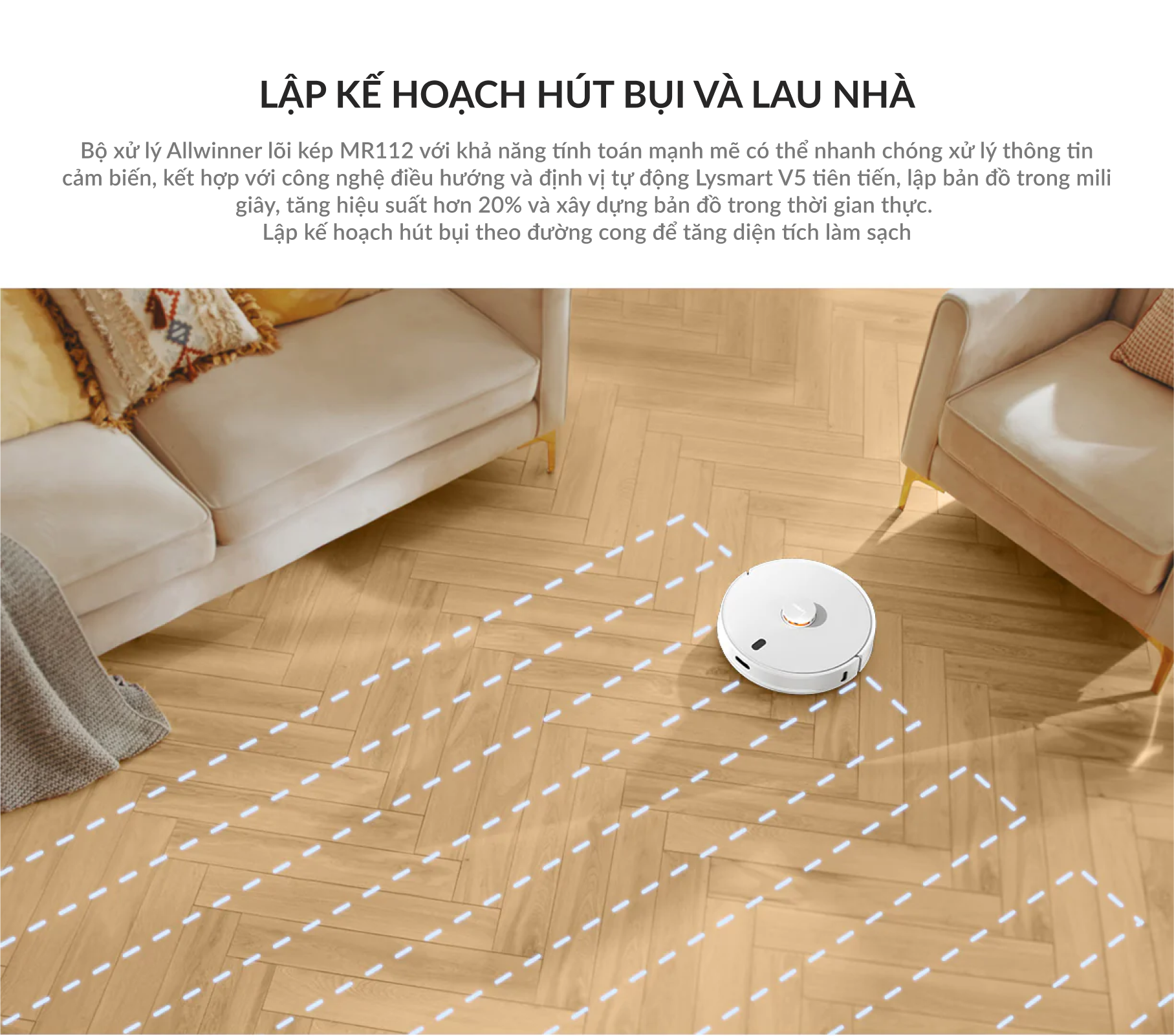 CÔNG SUẤT HÚT MẠNH MẼ chế độ lau chế độ hút 4000PA Hút sạch và cực sâu, loại bỏ hoàn toàn bụi và rác mang lại bầu không khí trong lành lý tưởng.