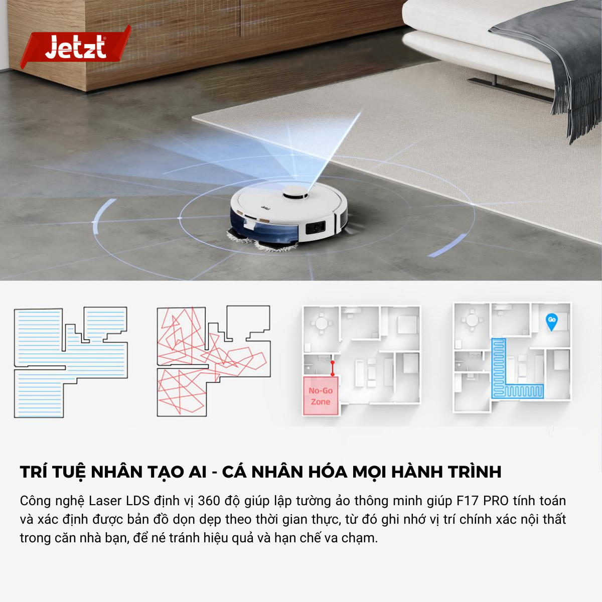 Robot hút bụi lau nhà thông minh Jetzt F17 PRO