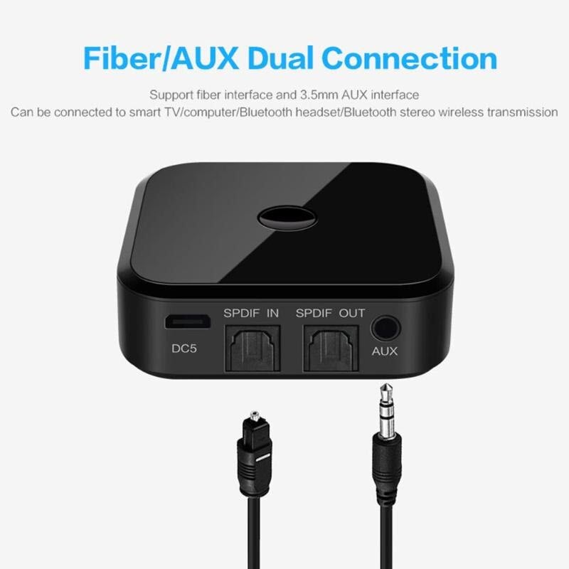 Sự chỉ rõ: Tên sản phẩm: Bộ thu phát Bluetooth hai trong một Giao diện đầu ra: 3.5mm + cáp quang Giao thức Bluetooth: AVRCP, A2DP Phiên bản bluetooth: 5.0 Dung lượng pin: 3.7V/300mAh Kết