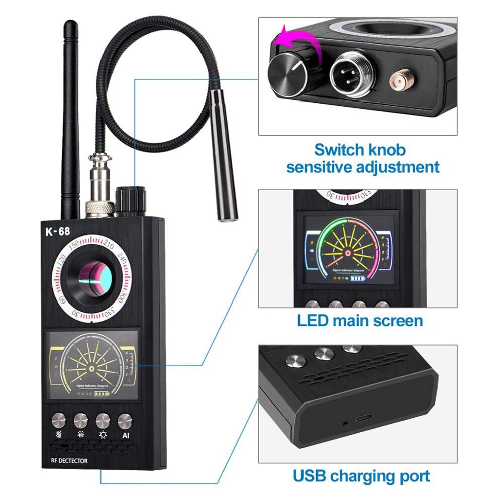 ✨ROGTZ - Máy dò Camera ẩn Máy ghi âm GPS Tín hiệu di động Tín hiệu vô tuyến K68 Detector Pin Lithium 1200mAh Thời gian sử dụng 8-10 tiếng Sạc nhanh Kích thước siêu nhỏ Khu vực dò rộng Văn phòng Khách sạn Nhà ở Oto Hàng Chính Hãng