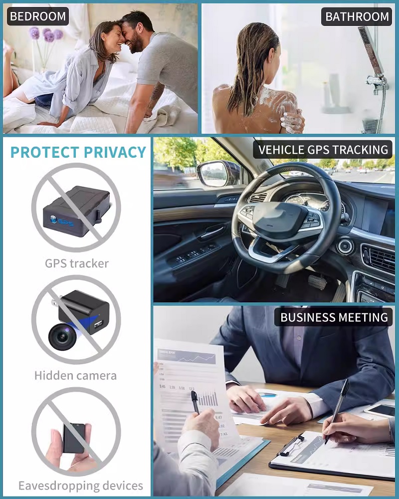 - Bảo vệ an ninh cá nhân: Dò tìm thiết bị GPS định vị đang được đặt ẩn giấu trong xe, trên người hoặc hành lý của bạn.