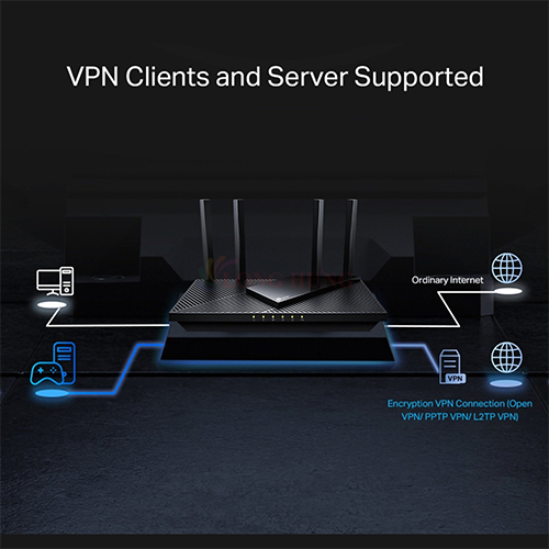 - Chuẩn Wi-Fi 6 AX3000 tốc độ đến 3000Mbps (2402Mbps băng tần 5GHz + 574Mbps băng tần 2.4GHz) - Công nghệ OFDMA & MU-MIMO – nhiều thiết bị truy cập đồng thời, giảm nghẽn mạng