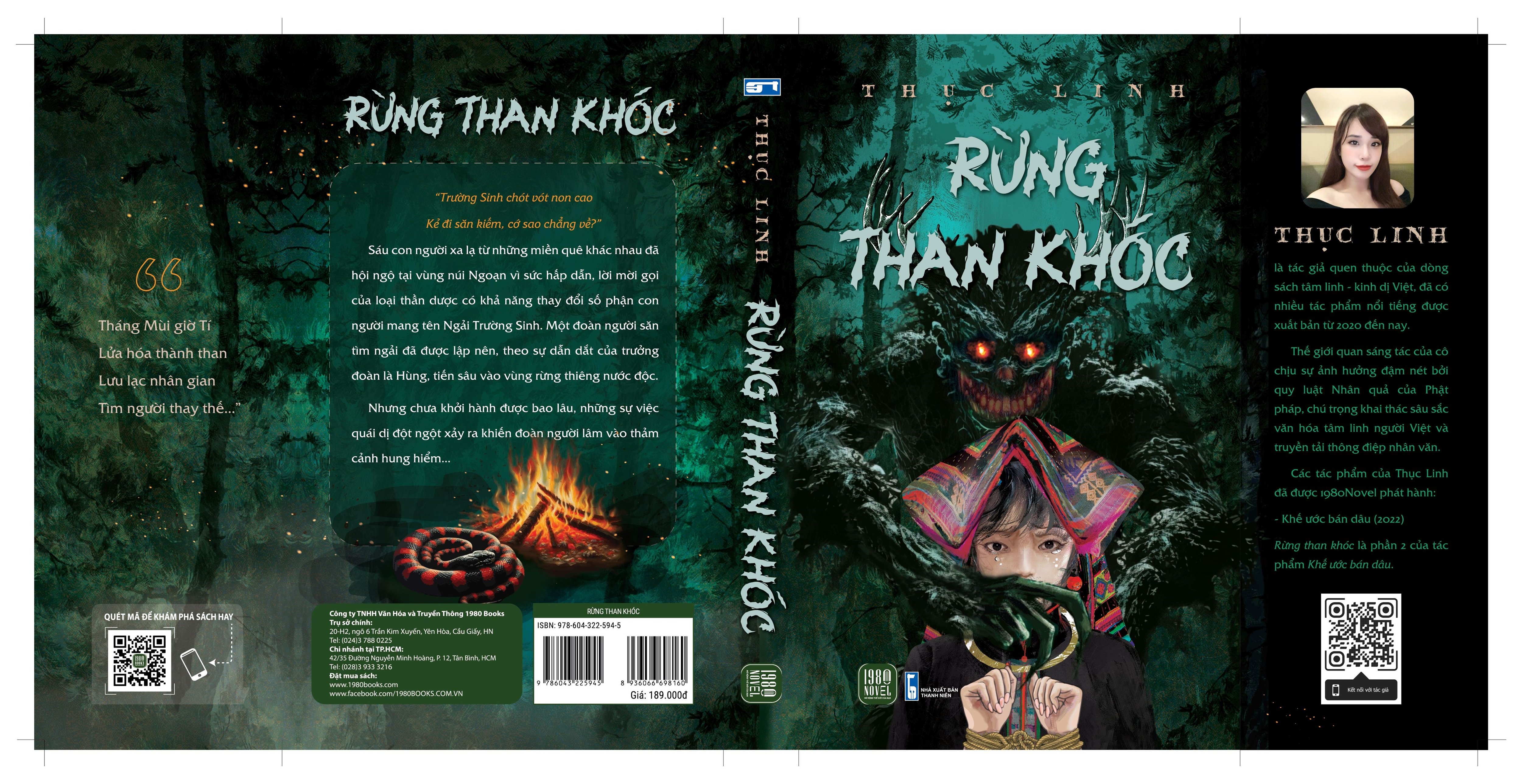 TÁC GIẢ: Thục Linh THÔNG TIN XUẤT BẢN: Kích thước: 13x20.5 Số trang: 488 Mã EAN: 8936066698160 NXB liên kết: NXB THANH NIÊN Sách do Công ty TNHH Văn hóa và Truyền thông 1980 BOOKS ấn hành quý I/2024 RỪNG THAN KHÓC “Trường Sinh chót vót non cao Kẻ đi săn kiếm cớ sao chẳng về?” Ngải Trường Sinh là loài cây có công dụng cải tử hoàn sinh và kéo dài tuổi thọ cho con người, nhưng những kẻ tìm kiếm nó sẽ phải vất vả, hi sinh cả thời gian, xương máu, nước mắt và thậm chí là chính sinh mạng của mình để đánh đổi.   Sáu con người xa lạ từ những miền quê khác nhau đã hội ngộ tại vùng núi Ngoạn vì sức hấp dẫn, lời mời gọi của loại thần dược có khả năng thay đổi số phận con người ấy. Một đoàn người săn tìm ngải đã được lập nên, theo sự dẫn dắt của trưởng đoàn là Hùng, tiến sâu vào vùng rừng xa lạ. Tự tin với việc đã tận tay chạm vào ngải Trường Sinh, dẫn nhiều đoàn khách trở về an toàn, Hùng phổ biến các quy tắc ngầm khi tiến vào nơi “rừng thiêng nước độc”, yên tâm rằng mọi người sẽ lưu ý và làm theo. Nhưng chưa khởi hành được bao lâu, những sự việc quái dị đột ngột xảy ra, liệu nó bắt đầu từ sự coi thường phép tắc tại chốn rừng thiêng của những kẻ mang suy nghĩ thiển cận, hay chính tại nơi đây còn ẩn náu một sinh vật bí ẩn nào đó, gieo rắc cái chết và nỗi kinh hoàng khiến đoàn người lâm vào thảm cảnh đầy hung hiểm?   Về tác giả: Thục Linh là tác giả quen thuộc của dòng sách tâm linh - kinh dị Việt, đã có nhiều tác phẩm nổi tiếng được xuất bản từ 2020 đến nay. Với những tác phẩm lôi cuốn thể hiện được phong cách sáng tác riêng, cô nhận được nhiều sự ủng hộ từ cộng đồng yêu sách cũng như giới phê bình. Thế giới quan sáng tác của cô chịu sự ảnh hưởng đậm nét bởi quy luật Nhân quả của Phật pháp, chú trọng khai thác sâu sắc văn hóa tâm linh người Việt và truyền tải thông điệp nhân văn. Các tác phẩm của Thục Linh đã được 1980Novel phát hành: