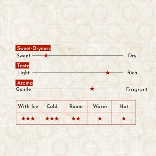 Một loại rượu mơ đậm đà được làm từ Nanko-Ume chín muồi- loại mơ Nhật Bản được trồng bởi những người nông dân dày dặn kinh nghiệm của Tỉnh Wakayama. Không như nhiều loại sake khác (rượu được ngâm cùng mơ nguyên trái), rượu mơ của nhà Yosamusume được tạo ra từ những quả mơ chín chọn lọc được nghiền hoàn toàn và thêm vào mang lại sự đặc biệt trong từng chai Nigori Umesyu. Đó cũng là lí do ngoài việc uống trực tiếp như một loại sake thì chai rượu mơ của Yosamusume cũng thật hoàn hảo để tạo ra những ly Cocktail thơm ngon đặt biệt.