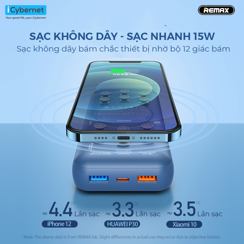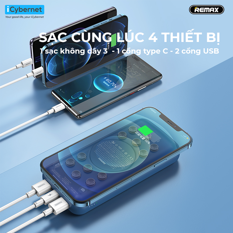 - Sạc dự phòng không dây 20000mAh Remax RPP-207 sạc nhanh không dây 15W, 3 cổng có dây 22.5W. - Cổng sạc không dây 15W - 3 cổng sạc có dây: 2*USB chuẩn QC 22.5W;