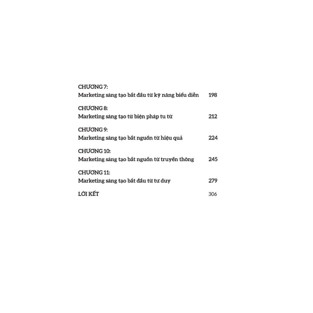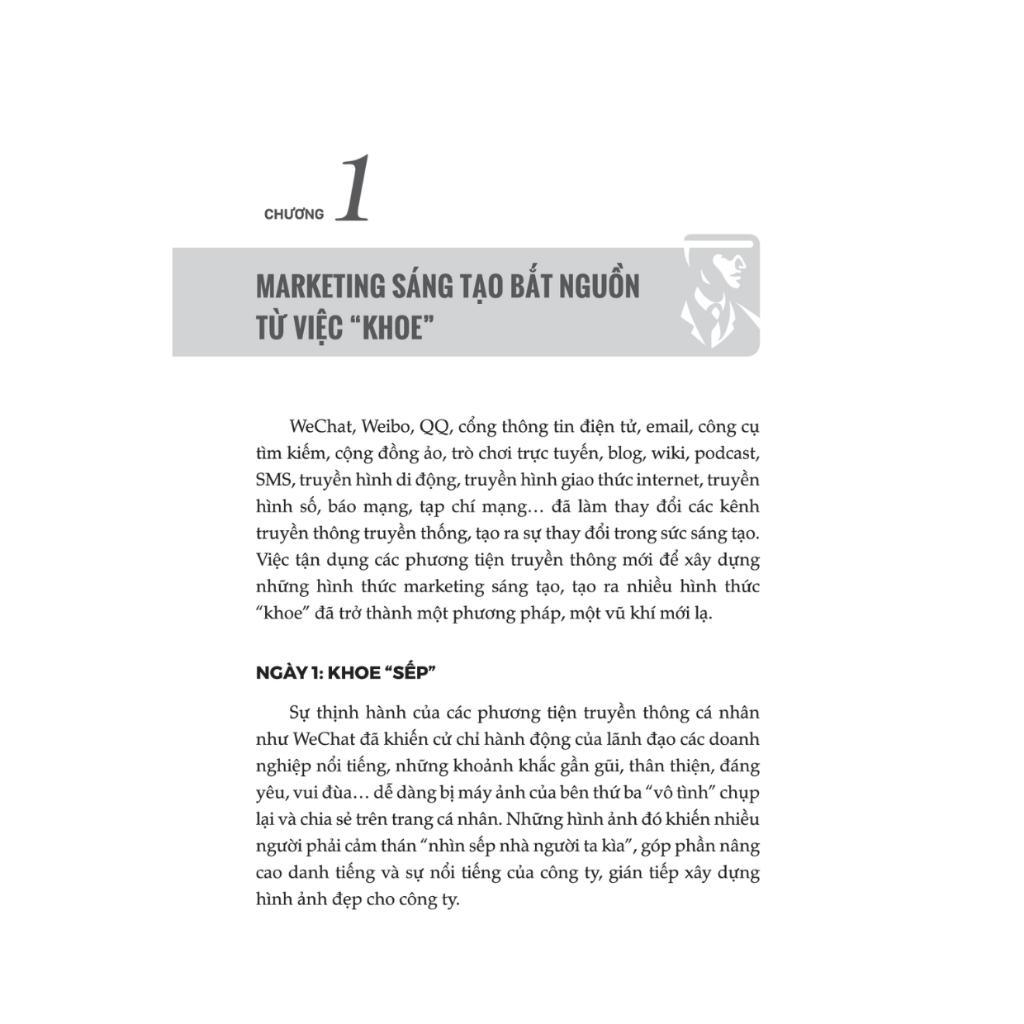 Để giúp người đọc tiết kiệm thời gian quý báu và làm chủ tốt hơn các kỹ thuật sáng tạo, cuốn sách được chia thành 11 chương với tổng số 168 loại phương pháp, cho phép người đọc có thể học trong 168 ngày. Bằng cách đọc các “ví dụ” và “phân tích phương pháp” một cách thoải mái mỗi ngày. Người đọc sẽ có thể hiểu sâu hơn về từng phương pháp marketing sáng tạo, từ đó giúp mỗi người thành công trong việc tạo ra ý tưởng marketing sáng tạo.