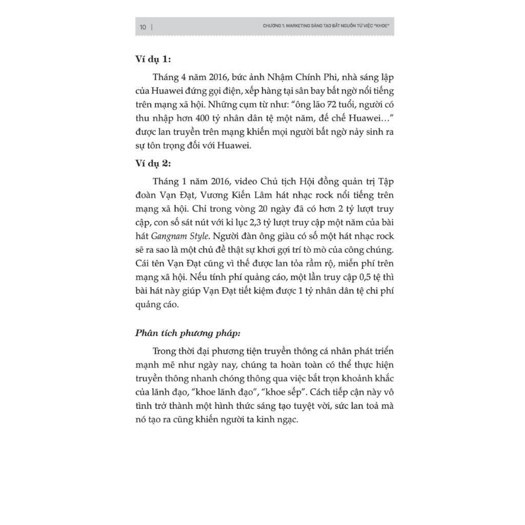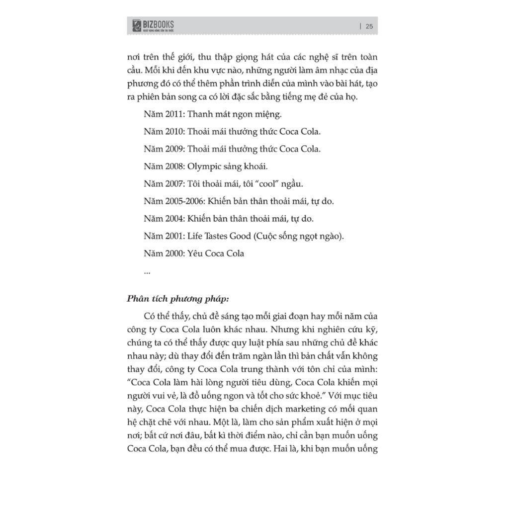 Rất nhiều người cho rằng sự sáng tạo là tài năng bẩm sinh, mà qua đó chỉ có một nhóm người đặc biệt được thừa hưởng sự sáng tạo – và những người còn lại chỉ tiếc là không có được khả năng đặc biệt đó. Tuy nhiên thì điều này hoàn toàn sai sự thật! Sáng tạo là một kỹ năng, mà đã là kỹ năng thì bất kỳ ai cũng có thể lĩnh hội thông qua cuốn sách “168 Ý tưởng vàng cho Marketing sáng tạo”, cuốn sách này không chỉ tuân theo các nguyên tắc cơ bản của quảng cáo marketing sáng tạo như mức độ phù hợp, tính nguyên bản, đơn giản, rõ ràng, hợp pháp và chân thực, mà còn sử dụng các phương pháp sáng tạo khác nhau.