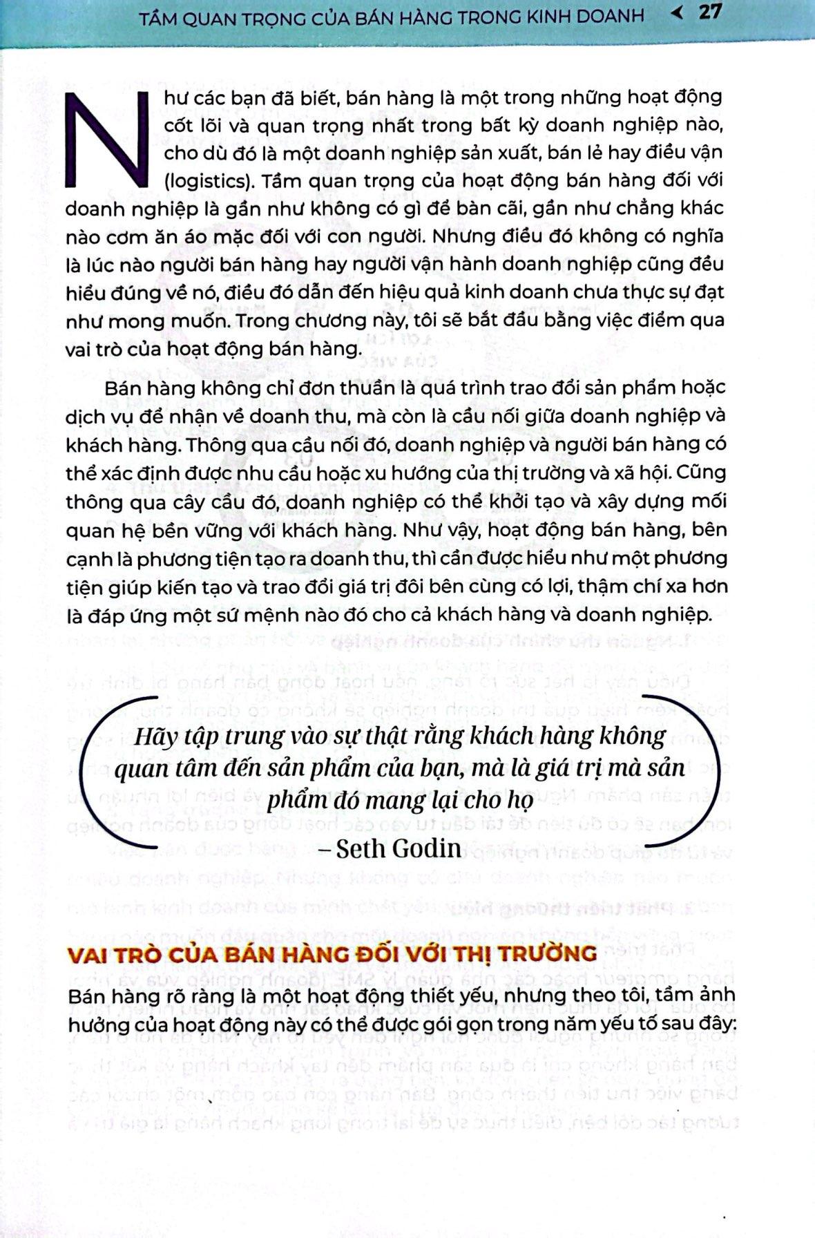 Cuốn sách không chỉ dừng lại ở những lời khuyên lý thuyết, mà còn mang tới những bài học thực chiến và các mô hình thực tế. Từ việc khai thác phản hồi của khách hàng để hoàn thiện sản phẩm, đến việc phát triển kỹ năng tư duy tích cực và quản lý stress trong quá trình làm việc, tất cả đều được trình bày một cách chi tiết và dễ hiểu. Đối với những ai mới bắt đầu sự nghiệp bán hàng, cuốn sách này sẽ giúp bạn xây dựng nền tảng vững chắc, còn đối với những người đã có kinh nghiệm, đây sẽ là một tài liệu quý giá để liên tục hoàn thiện và nâng cao kỹ năng bán hàng.