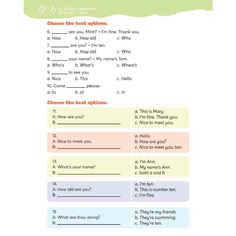 Sách 50 đề tăng điểm nhanh Tiếng Anh lớp 4 là một nguồn tài liệu quý báu giúp học sinh lớp 4 và phụ huynh có công cụ hỗ trợ hiệu quả trong việc học và ôn luyện Tiếng Anh.