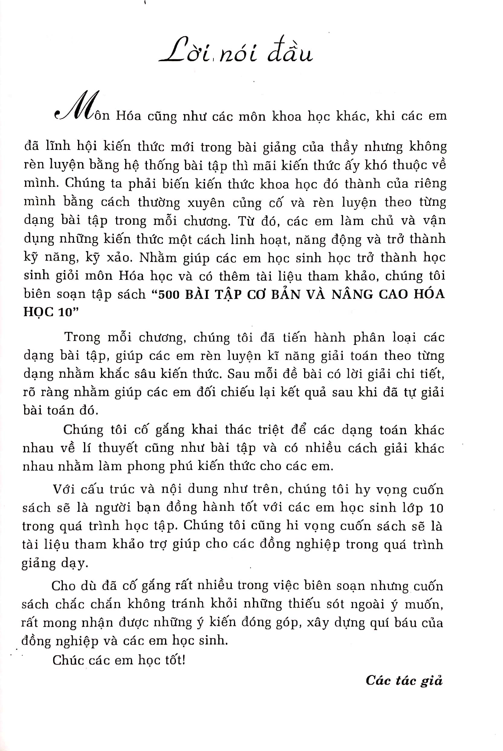 500 Bài Tập Cơ Bản Và Nâng Cao Hóa Học 10 (Theo Chương Trình Giáo Dục Phổ Thông Mới - Dùng Chung Cho Các Bộ SGK Hiện Hành)