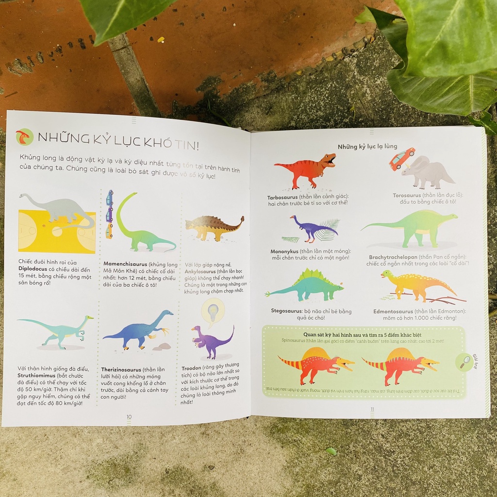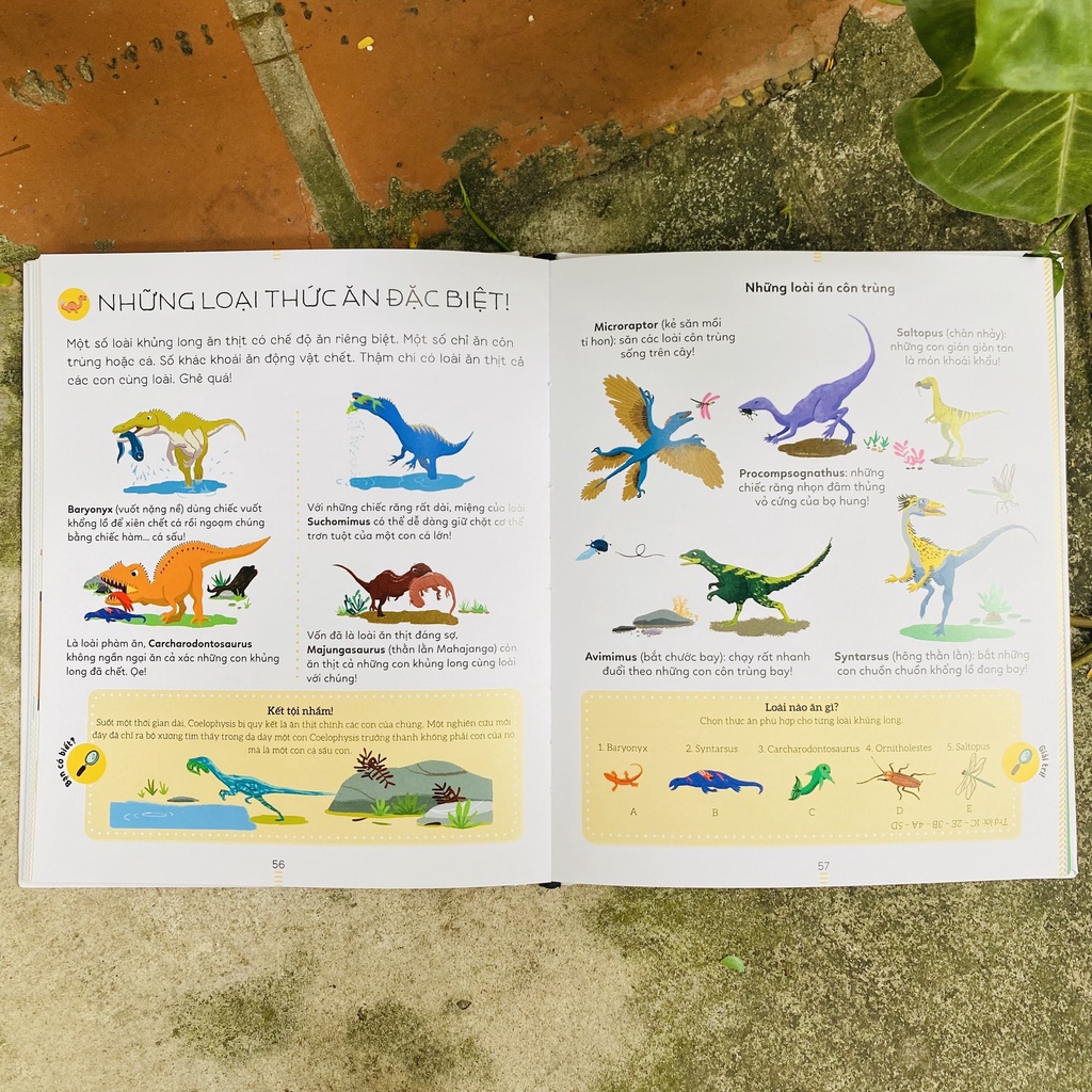Khủng long không chỉ gồm các loài to lớn xù xì đâu, mà đa dạng và sống động hơn rất nhiều! Em có biết không, có nhiều loài khủng long bé xíu, cũng có những con to cồng kềnh nặng nề, có loài nhanh thoăn thoắt và khéo léo như tên trộm ranh ma, cũng có loài ù lì chậm chạp! Cuốn bách khoa thư sinh động này sẽ giúp em hiểu hết về các loài khủng long - sinh vật cổ đại từng thống trị mặt đất!