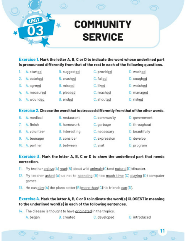 Phần thứ nhất gồm các bài tập ôn luyện được biên soạn theo các chủ đề dựa trên chương trình sách giáo khoa mới nhất. Phần thứ hai là phần luyện để học sinh giỏi của các trường. Bài tập dành cho mỗi đơn vị bài học bao gồm hơn 50 câu với đủ các dạng bài, ngữ âm, từ vựng và ngữ pháp.