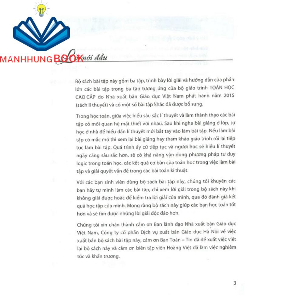 Nội dung: Bộ sách bài tập gồm 3 tập, trình bày lời giải và hướng dẫn của phần lớn các bài tập trong ba tập tương ứng của bộ giáo trình TOÁN HỌC CAO CẤP do NXB Giáo dục Việt Nam phát hành.