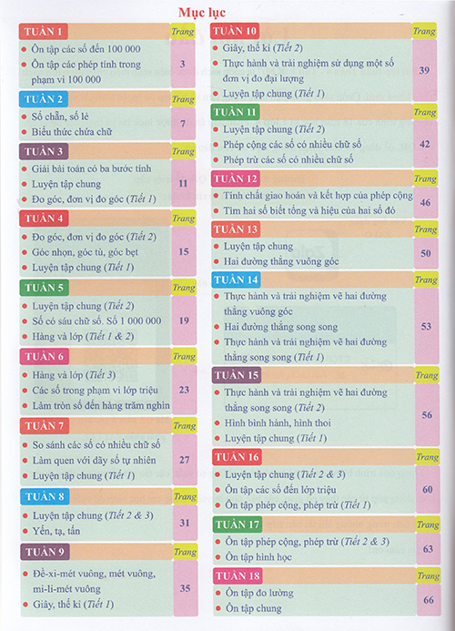 NỘI DUNG Sách - Bài tập tuần Toán 4 tập 1 (Biên soạn theo chương trình Kết nối tri thức)