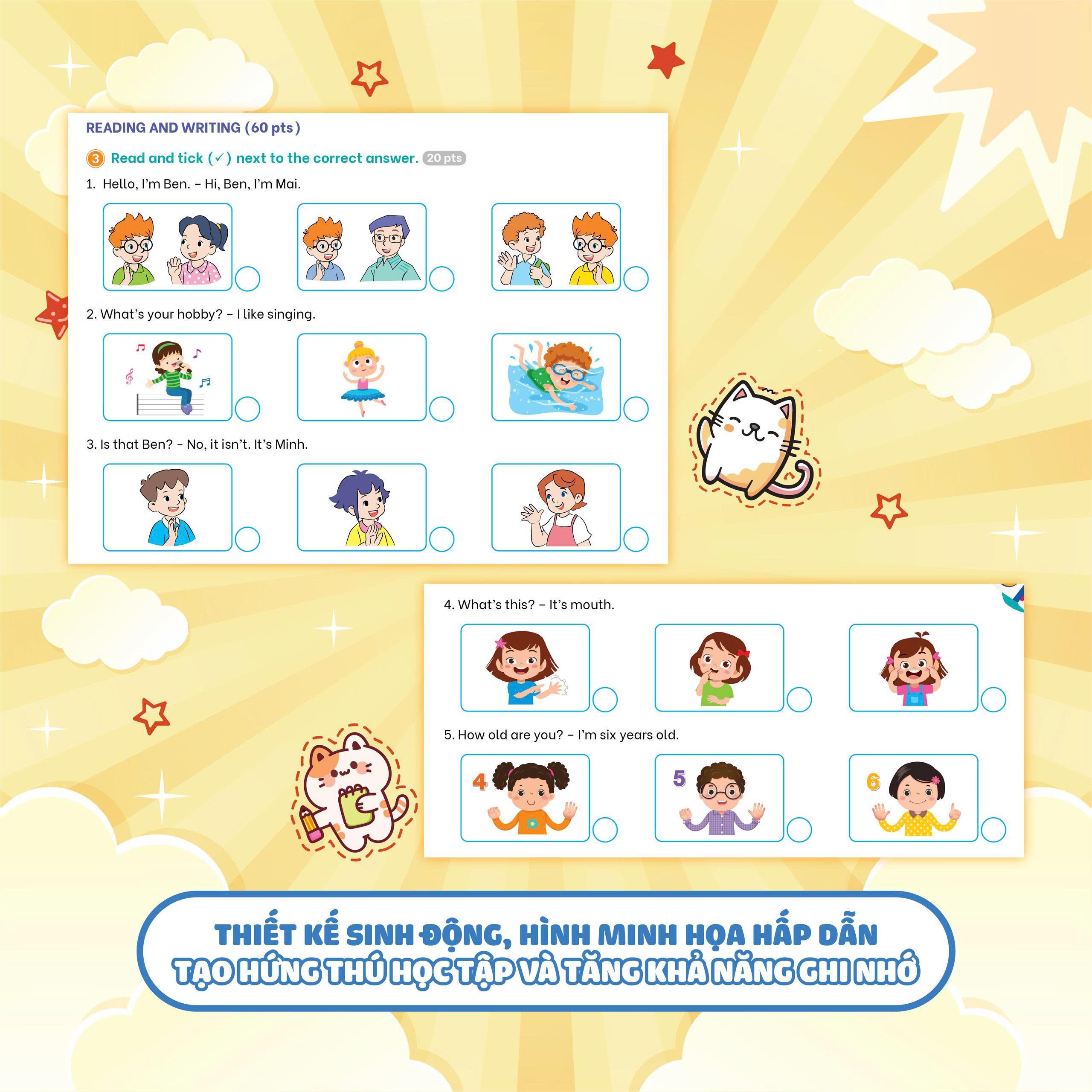 Bộ đề kiểm tra định kỳ Tiếng Anh lớp 3 gồm 2 Tập, được thiết kế khoa học theo từng giai đoạn học tập trong năm học, giúp người học củng cố và hệ thống hóa kiến thức sau mỗi bài học. Sách gồm 10 bài học bám sát chương trình chính khóa, kèm theo 10 đề kiểm tra giữa và cuối học kỳ giúp đánh giá toàn diện kiến thức. Với hệ thống bài tập thực tế và đáp án chi tiết, bộ sách là trợ thủ đắc lực giúp học sinh tự ôn luyện, theo dõi tiến bộ qua từng giai đoạn, đồng thời là nguồn tham khảo hữu ích cho giáo viên trong giảng dạy và xây dựng đề kiểm tra.