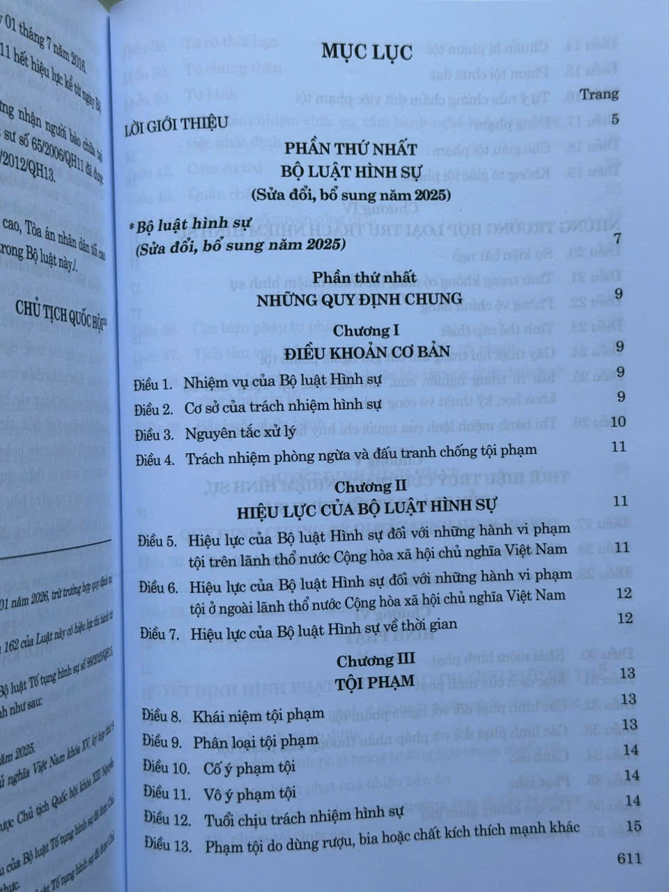 - Luật số 86/2025/QH15 sửa đổi, bổ sung một số điều của Bộ luật Hình sự, có hiệu lực thi hành từ ngày 01 tháng 7 năm 2025. Phần BỘ LUẬT TỐ TỤNG HÌNH SỰ trong cuốn sách này đã hợp nhất các Luật sửa đổi nên tiện tra cứu và áp dụng ạ: