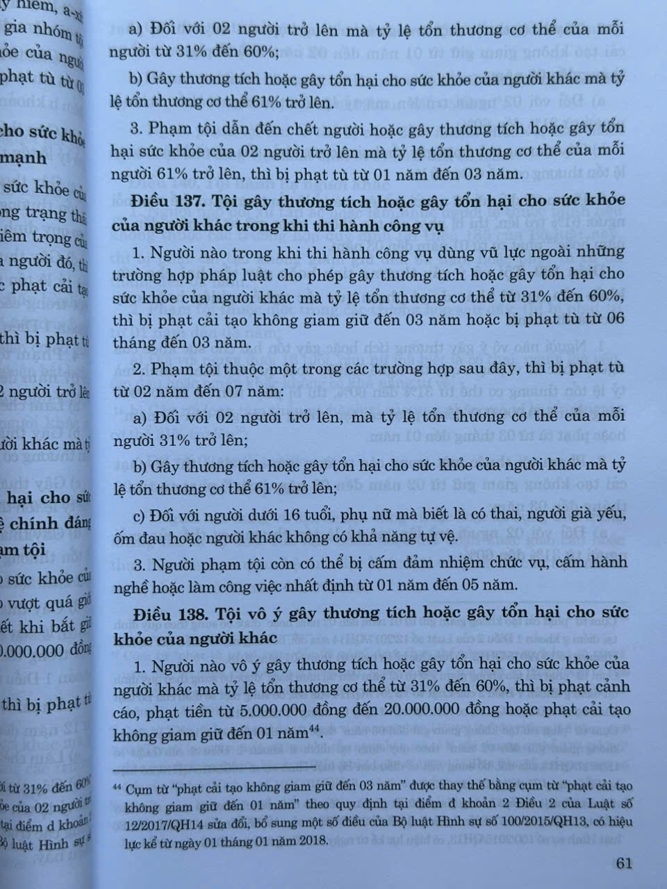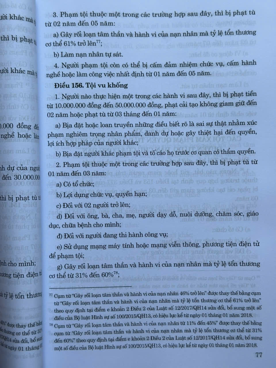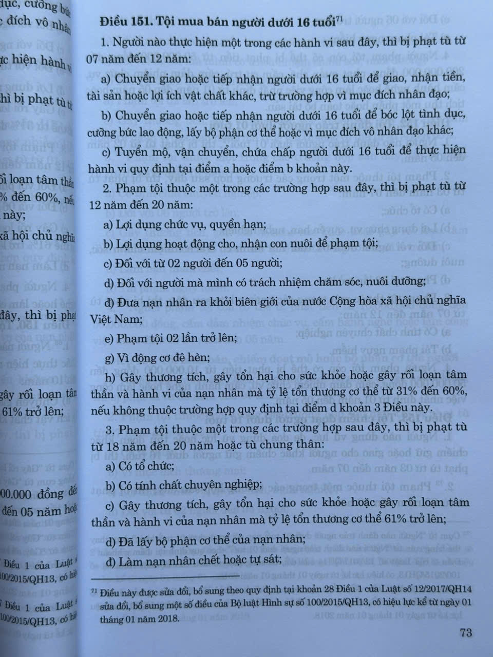 - Toàn bộ sách bìa mềm khổ lớn 16 x 24 cm phân phối bởi Nhà sách Nam Việt đều được bọc sách Plastic MIỄN PHÍ và xuất hóa đơn điện tử đầy đủ, nhanh chóng. …//… Nội dung cuốn sách gồm 2 phần sau: Phần BỘ LUẬT HÌNH SỰ trong cuốn sách này đã hợp nhất các Luật sửa đổi nên tiện tra cứu và áp dụng ạ: