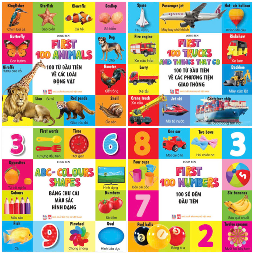 Bộ Sách 100 Từ Đầu Tiên Cho Bé (Bộ 4 Cuốn) Bộ sách 100 Từ Đầu Tiên Cho Bé là sách song ngữ dành cho trẻ nhỏ, giúp bé làm quen với những từ vựng