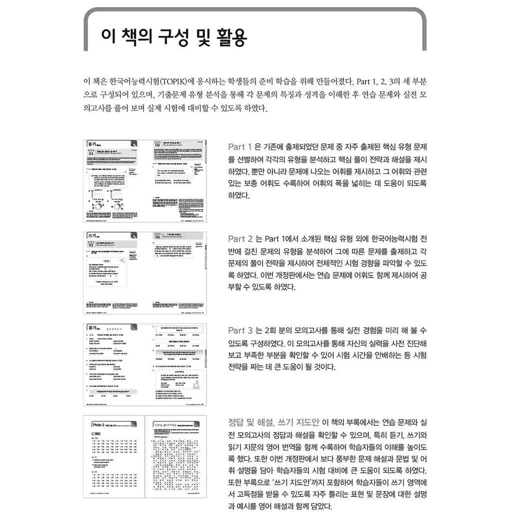 Thi thử như thật bằng đề thi thử có kèm theo phần giải thích song ngữ Hàn-Việt ở Phụ lục nhằm chuẩn bị hoàn hảo cho kỳ thi TOPIK.