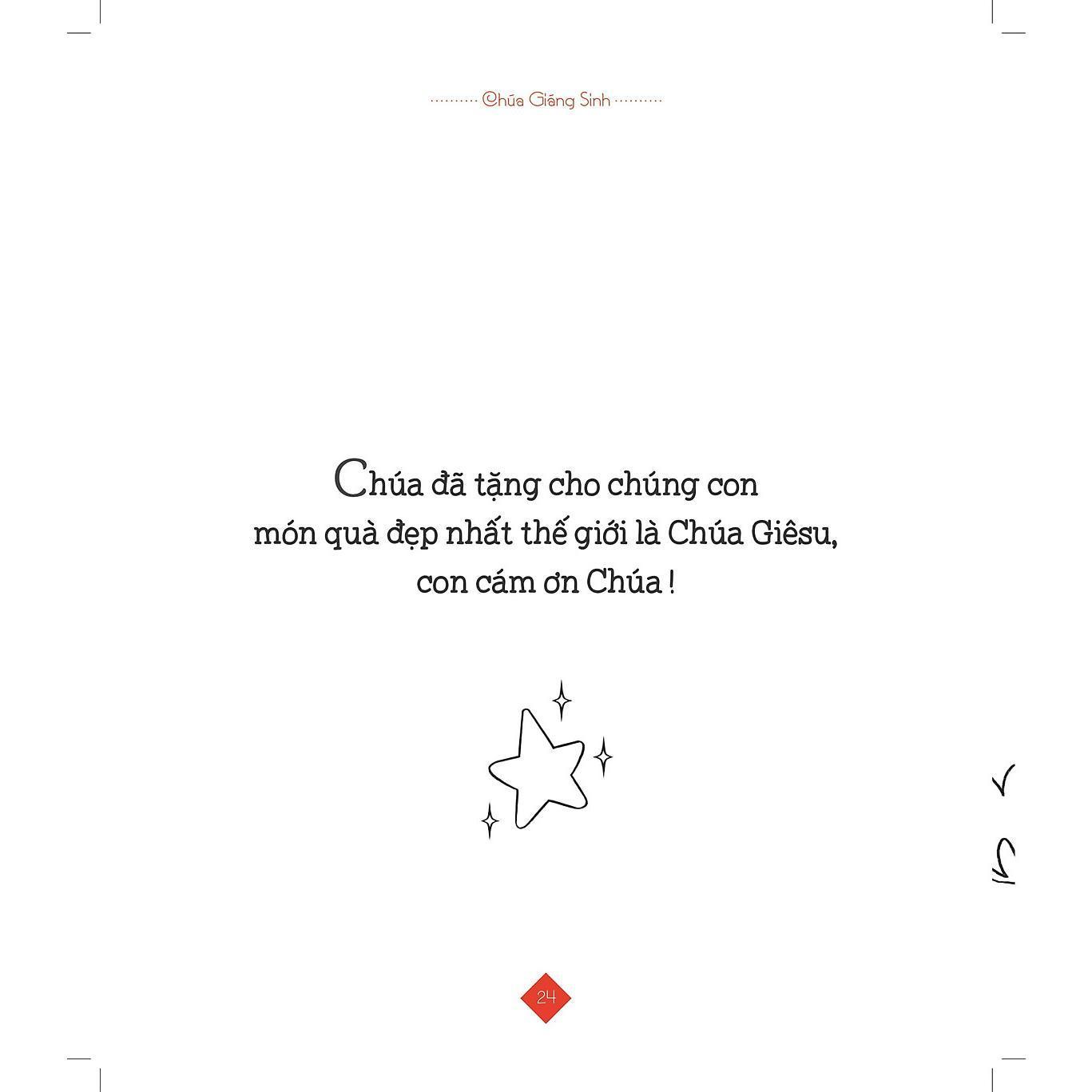 - Là quyển sách tô màu dành cho trẻ từ 3 đến 6 tuổi, gồm 38 lời cầu nguyện và hình vẽ chủ đề Mừng giáng sinh tuyệt đẹp giúp các em thiếu nhi học cầu nguyện với Chúa Giêsu Hài Đồng qua trò chơi tô màu.