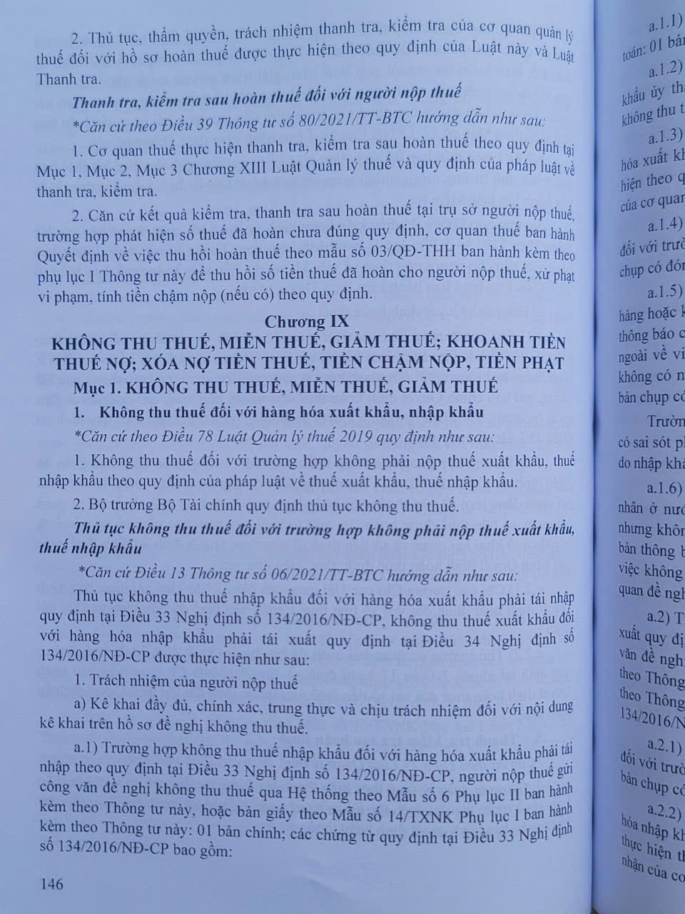 Chương IX. KHÔNG THU THUẾ, MIỄN THUẾ, GIẢM THUẾ; KHOANH TIỀN THUẾ NỢ; XÓA NỢ TIỀN THUẾ, TIỀN CHẬM NỘP, TIỀN PHẠT