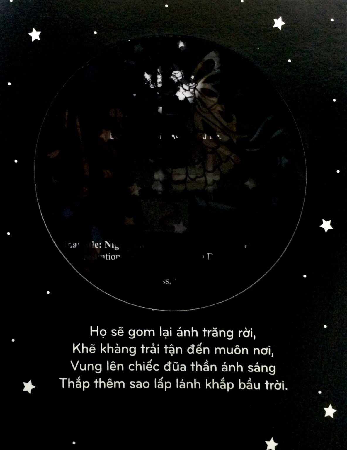 Hãy bật đèn pin, chiếu những “thước phim” sống động lên tường và ngâm nga theo những lời thơ, tiếng hát và câu chuyện đáng yêu trong cuốn sách này. Một thế giới thần kỳ chắc chắn sẽ hiện ra ngay trước mắt em đấy!