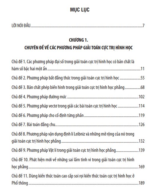 Mua tại TiktokCuốn sách hay không thể thiếu trong tủ sách nhà bạn! Cuốn sách bao gồm các bài toán về cực trị hình học công phu, hay, đa dạng và có nhiều tìm tòi mới! Có những kiến thức, cách tiếp cận về cực trị hình học mà chỉ riêng cuốn sách này mới có!