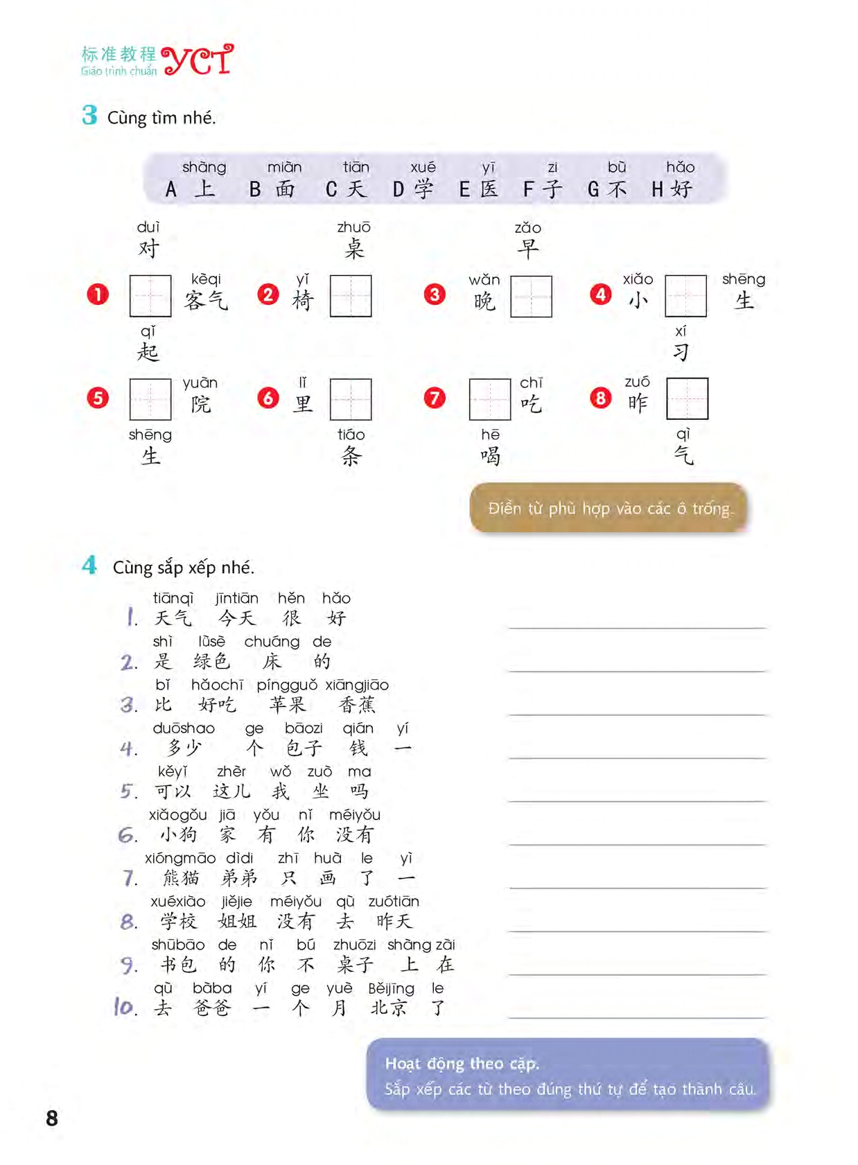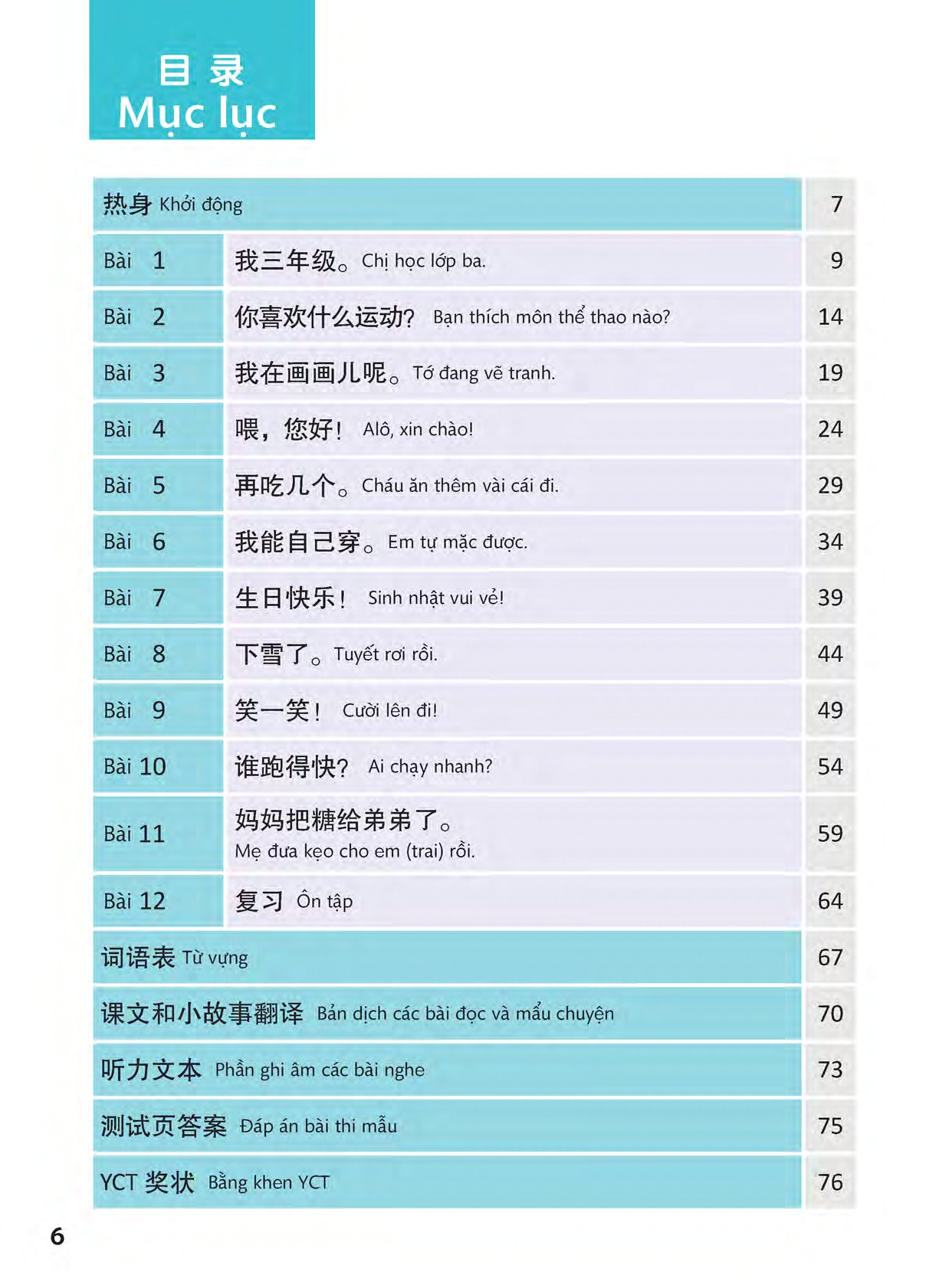 Nội dung sách: Sách YCT là sách tiếng hoa thiếu nhi bản quyền chuẩn mẫu chương trình dạy cho các bé từ vở lòng bằng những bài học đơn giản nhất.