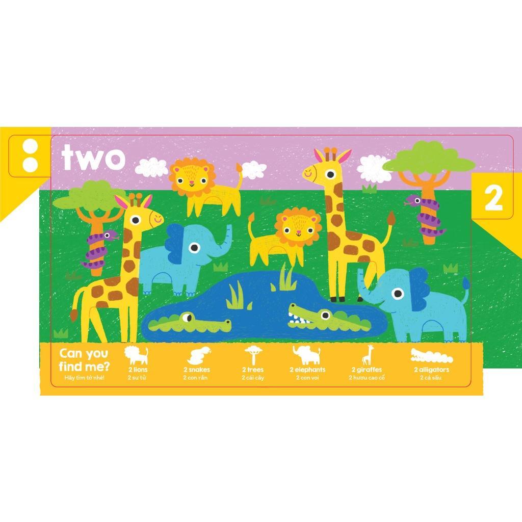 Cuốn sách mang chủ đề về các chữ số đơn giản trong tiếng anh. Các bé sẽ vừa phát triển tư duy logic khi học về các con số, vừa có thể phát triển khả năng quan sát qua từng trang sách. Màu sắc tương phản, bắt mắt, rất phù hợp để bé phân biệt, nhận biết con số.