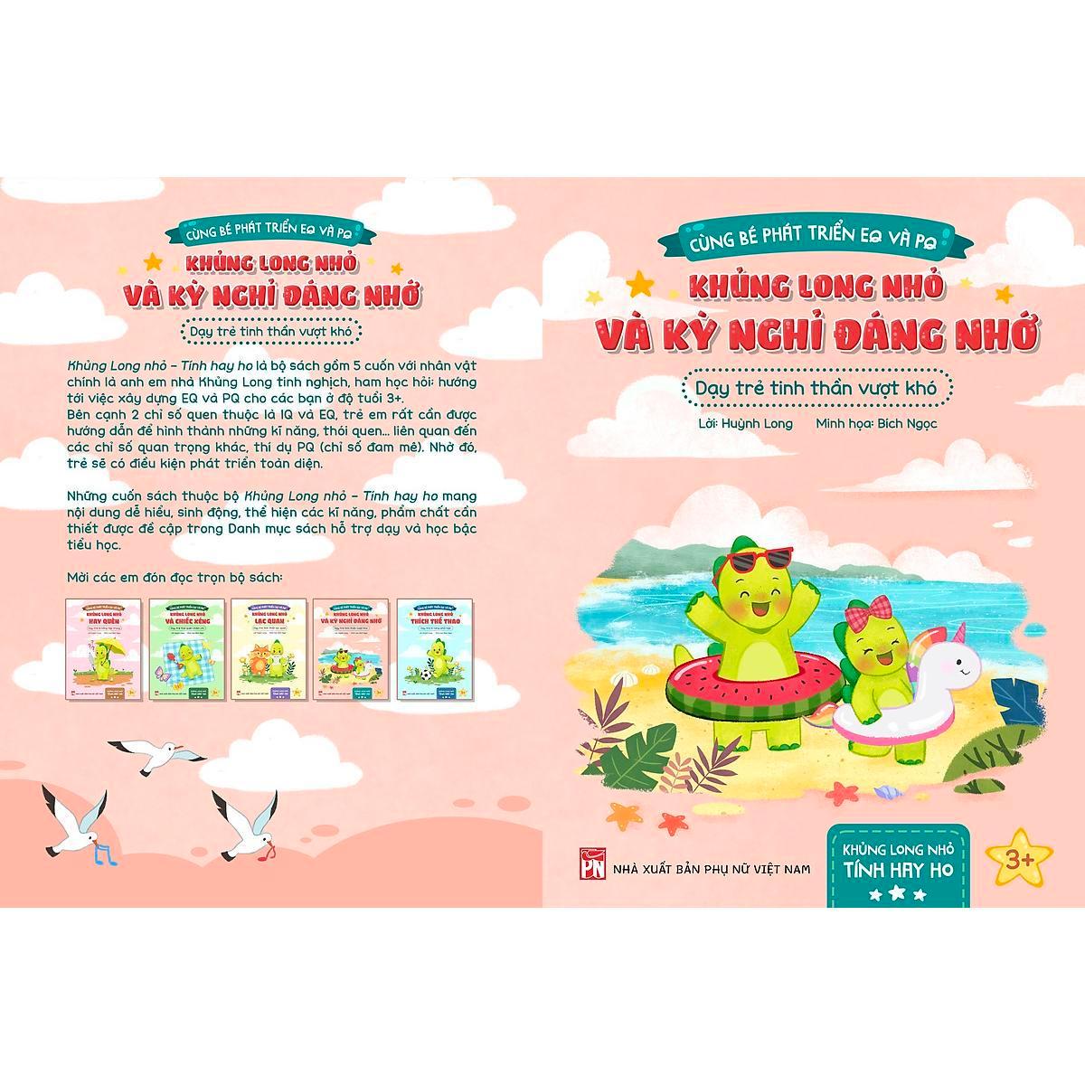 Cầm bộ sách được minh họa đẹp mắt trên tay, hẳn các em nhỏ sẽ tự hỏi hằng ngày bạn Khủng Long làm gì, chơi gì, bạn ấy có những đức tính gì, cần khắc phục khuyết điểm ra sao. Trong bộ sách Khủng Long nhỏ - Tính hay ho, chúng ta sẽ gặp một cậu chàng Khủng Long với “kha khá” đức tính tốt: chăm chỉ, nhiệt tình, hòa đồng, yêu thích thể thao… nhưng cũng còn những điểm cần điều chỉnh, chẳng hạn bạn ấy còn lơ đễnh, thiếu tập trung nên có lúc quên mất việc quan trọng: “Khủng Long nhỏ reo lên vui sướng. Cậu thích thú quan sát con ếch màu xanh đang nhảy nhót trên nền gạch và quên mất ba đang đứng đợi mình ở bến xe buýt” (trích Khủng Long nhỏ hay quên); hoặc chưa thuộc được lời thoại lúc tập kịch: “Mồm bà to vì… vì… Ôi, tớ lại quên lời thoại rồi! Xin lỗi các bạn!” (trích Khủng Long nhỏ lạc quan), hoặc có lúc bạn ấy cũng không tự tin vào chính khả năng của mình “Có phải là con chơi bóng thật tệ không ba?” (Khủng Long nhỏ thích thể thao)… Ôi chao, hóa ra Khủng Long nhỏ cũng gặp khó khăn và thiếu tự tin như tất cả chúng mình đấy thôi!