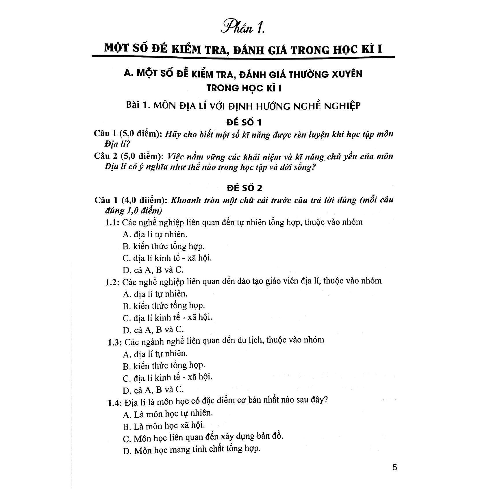 Để giúp các em có tài liệu thực hành các dạng đề trong quá trình học bài, tự ôn tập để chuẩn bị cho các kì kiểm tra, chúng tôi biên soạn cuốn ĐỀ KIỂM TRA, ĐÁNH GIÁ ĐỊA LÍ 10. Sách được viết dựa vào chương trình sách giáo khoa Địa lí 10 (SGK “Kết nối tri thức với cuộc sống”).