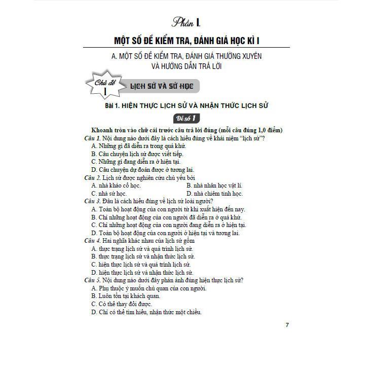 sách Đề kiểm tra, đánh giá Lịch sử 10.