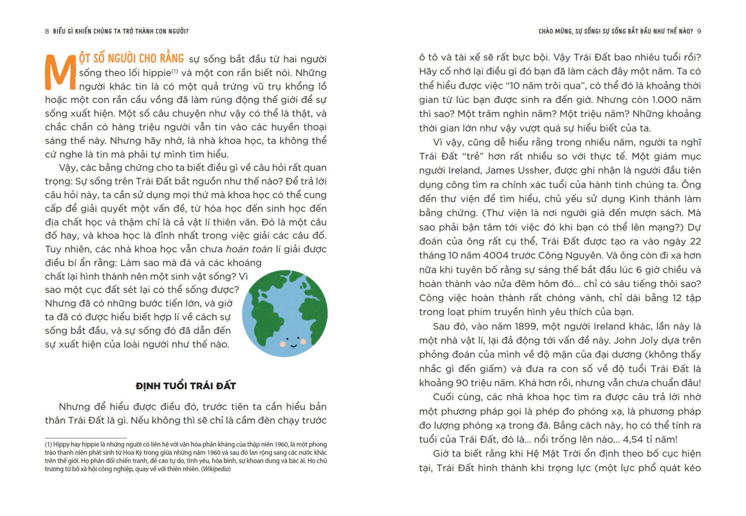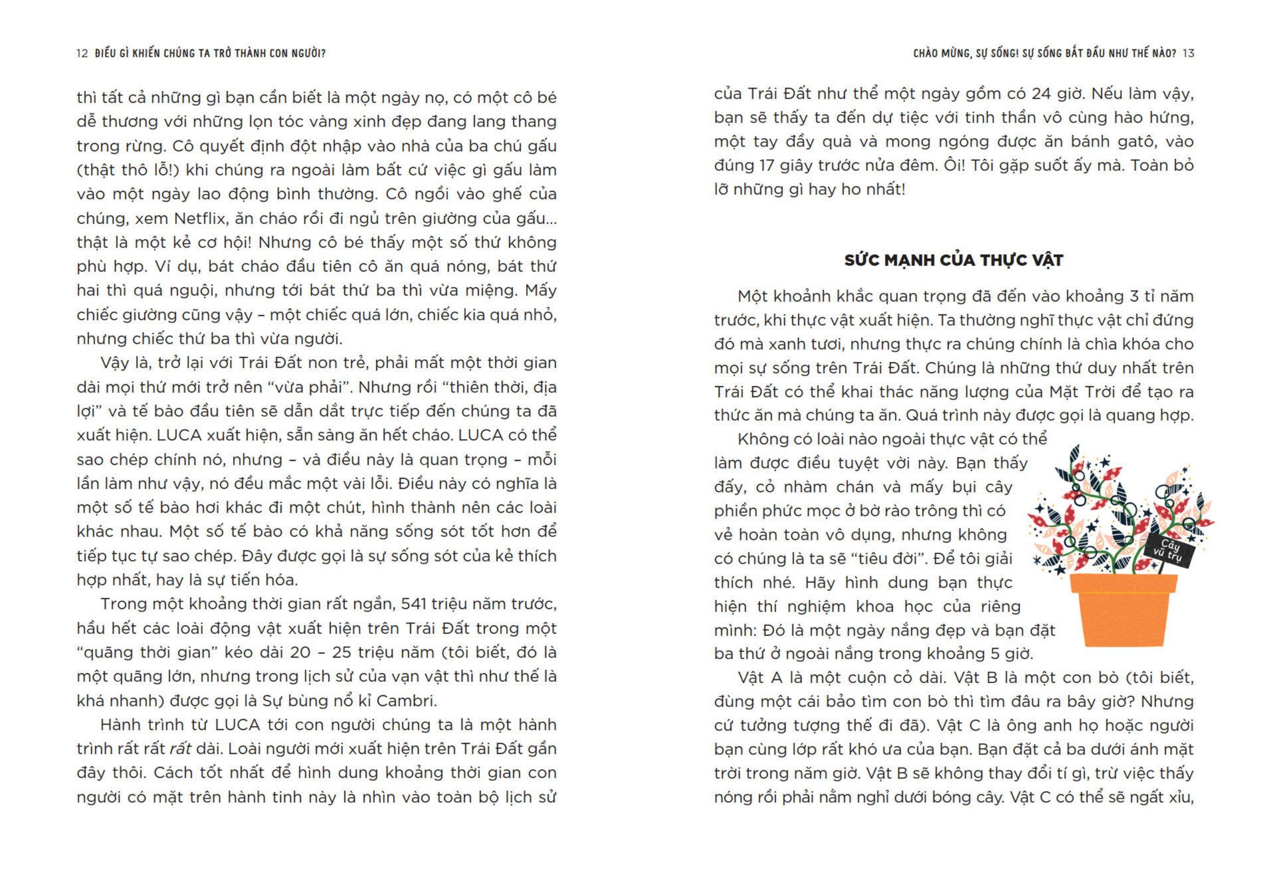 Mua tại TiktokĐiều Gì Khiến Chúng Ta Trở Thành Con Người? Nếu một người ngoài hành tinh đến Trái Đất, quan sát con người rồi so sánh với các dạng sống khác trên Trái Đất, ắt hẳn họ sẽ nhận ra những điều rất thú vị. Ví dụ, con người đi thẳng, mặc quần áo, nấu ăn, cười đùa và pha trò, chơi nhạc, chế tạo máy móc và suy nghĩ về những câu hỏi sâu sắc như: “Làm sao mà ta được như bây giờ?” Vậy điều gì khiến con người trở thành một loài khác biệt và độc nhất như vậy, và đâu là điểm chung giữa bạn với 7,75 tỉ người khác trên hành tinh này? Hành trình kì diệu với vô vàn bước ngoặt bất ngờ của sự sống đã được nhà miễn dịch học nổi tiếng Luke O’Neill hé lộ trong Điều Gì Khiến Chúng Ta Trở Thành Con Người? Cuốn sách sẽ dẫn bạn đọc tìm hiểu từ khởi nguyên của sự sống, khi tế bào đầu tiên xuất hiện trên Trái Đất khoảng 4 tỉ năm trước, cho đến thời điểm loài Homo sapiens sapiens, có nghĩa là “con người thông minh thông minh”, xuất hiện. Xem xét tất tần tật mọi điều xoay quay con người dưới góc nhìn khoa học, Điều Gì Khiến Chúng Ta Trở Thành Con Người? mang đến lời giải đáp đáng tin cậy và cụ thể về tình yêu, khiếu hài hước, khả năng cảm thụ âm nhạc, hay đủ mọi chuyện liên quan đến đồng hồ sinh học và nhịp sống của bạn, lí do bạn cảm thấy buồn ngủ hoặc đói, điều gì sẽ xảy ra khi bạn già đi, và cơ thể sẽ biến đổi thế nào sau khi bạn “nhắm mắt xuôi tay”… Hãy bắt đầu chuyến du hành khoa học khám phá sự sống qua mỗi trang sách ngay thôi nào!!