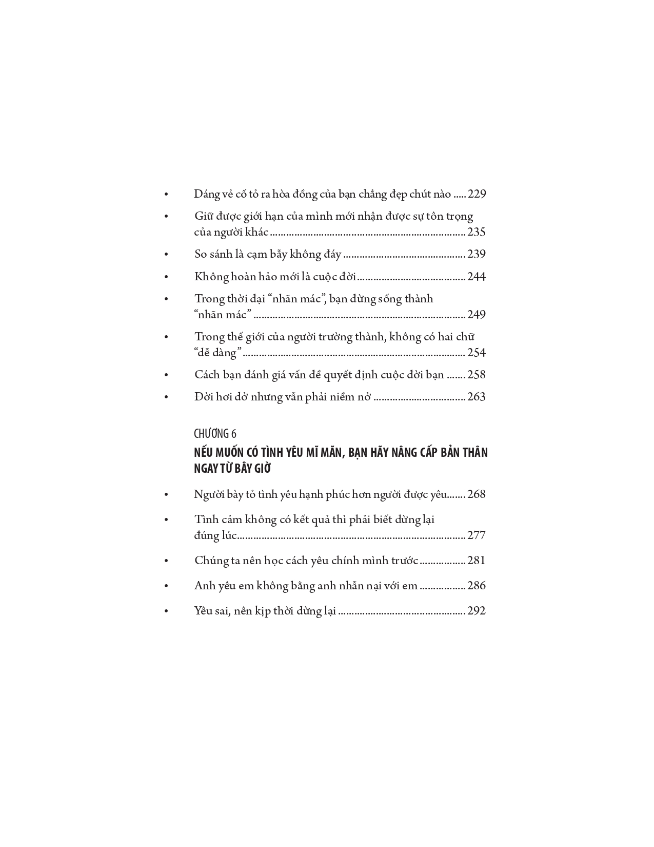 Chúng ta thường có xu hướng bỗng dưng theo đuổi một số thứ, rồi lại bất ngờ từ bỏ một số thứ. Chúng ta không đủ thấu hiểu bản thân và dễ bị cuốn theo số đông như một thói quen. Có lẽ đây chính là căn nguyên của mọi phiền não. Kinh nghiệm dành cho bạn là: Nhảy ra khỏi mục tiêu bạn muốn theo đuổi và nhìn rõ vị trí thực sự của nó trong thế giới này. Chỉ có như vậy, bạn mới không bị cuốn theo bất cứ ai hay sự vật nào, không vì có được mà vui quên trời đất, cũng không vì mất đi mà đau khổ đến tột cùng.
