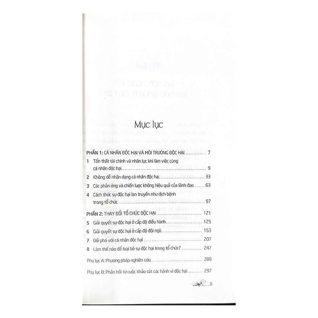 - Giới thiệu Cuốn sách ĐỐI PHÓ VỚI CÁ NHÂN ĐỘC HẠI Ở NƠI LÀM VIỆC của hai tác giả Mitchell Kusy và Elisabeth Holloway. Ở hai tiến sĩ này, nếu một người có hơn 25 kinh nghiệm trong vai trò lãnh đạo các tổ chức, đồng thời là cố vấn cho chương trình Lãnh đạo và Thay đổi của đại học Antioch. Còn người kia (Elisabeth Holloway) cũng tư vấn cho chương trình Lãnh đạo và Thay đổi của đại học Antioch. Theo nhận định của Gregg Steinhafel, chủ tịch kiêm CEO Target Corp: “Sách mô tả cách nhận diện và xử lý hiệu quả nhất những cá nhân độc hại, đồng thời cung cấp cách tiếp cận có hệ thống để tạo ra nền văn hóa tích cực và tôn trọng trong khi nâng cao lợi nhuận cho tổ chức. Kusy và Holloway chia sẻ phương pháp nghiên cứu trên phạm vi toàn quốc của họ vào thực tế tổ chức. Làm theo phương pháp cụ thể và thiết thực này sẽ tạo ra sự khác biệt đáng kể trong tổ chức.” Ông Frances Hesselbein, chủ tịch Viện Leader to Leader nêu nhận xét: “Sách Đối phó với cá nhân độc hại ở nơi làm việc chứa đựng quan điểm giá trị về những thách thức lớn mà các nhà lãnh đạo phải đối mặt trong tổ chức ngày nay. Đây là cuốn cẩm nang thiết thực cho các doanh nghiệp lành mạnh tương lai, không chỉ vì phương pháp tiếp cận hệ thống của Kusy và Holloway đối với cá nhân độc hại, mà còn vì cách thức độc đáo của họ trong việc tạo ra các cộng đồng gắn kết với nhau bằng sự tôn trọng, từ đó tác động đến trách nhiệm xã hội và lợi nhuận tổ chức