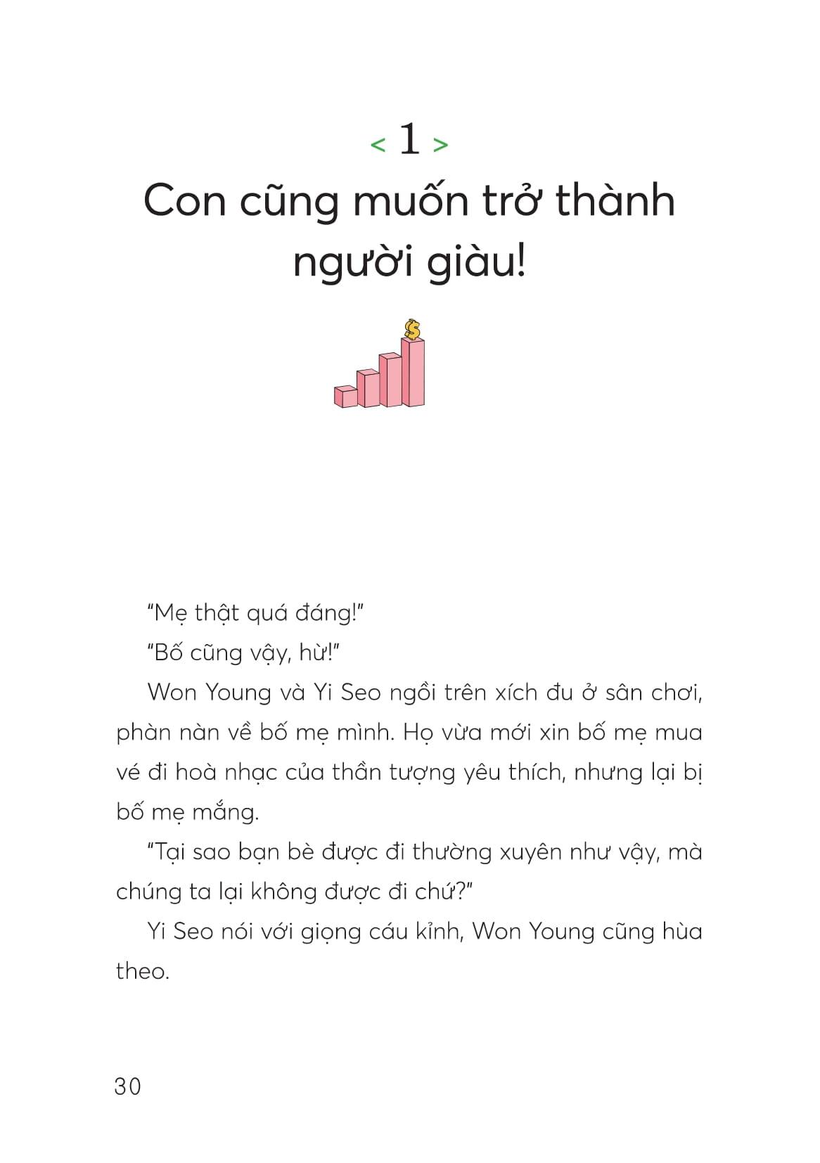Nội dung sách được xây dựng theo một lộ trình 5 bước cơ bản, giúp trẻ hình thành tư duy tài chính một cách có hệ thống: