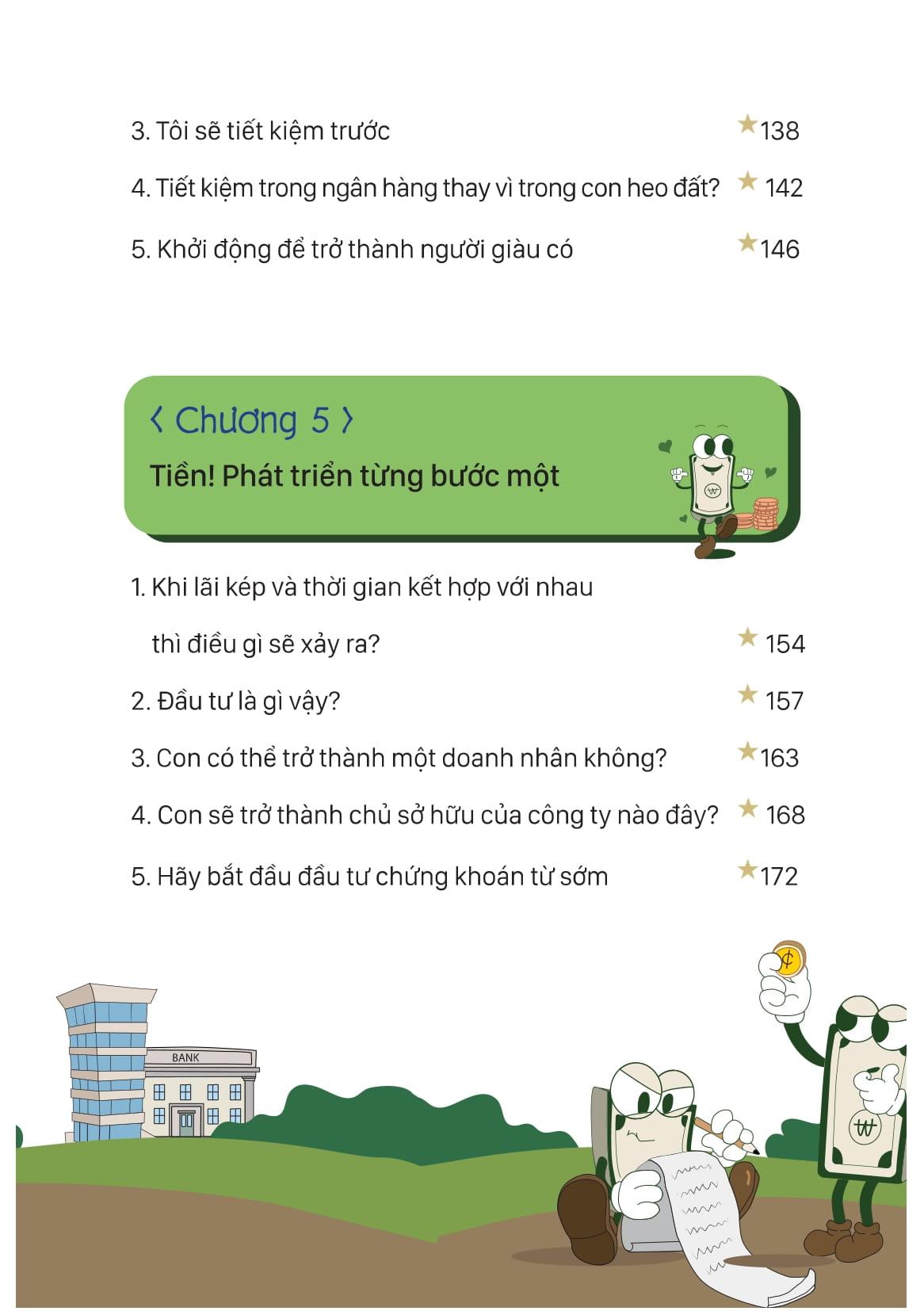 Mục lục của cuốn sách Đồng tiền vận hành ra sao? 5 bước hình thành tư duy tài chính cho trẻ