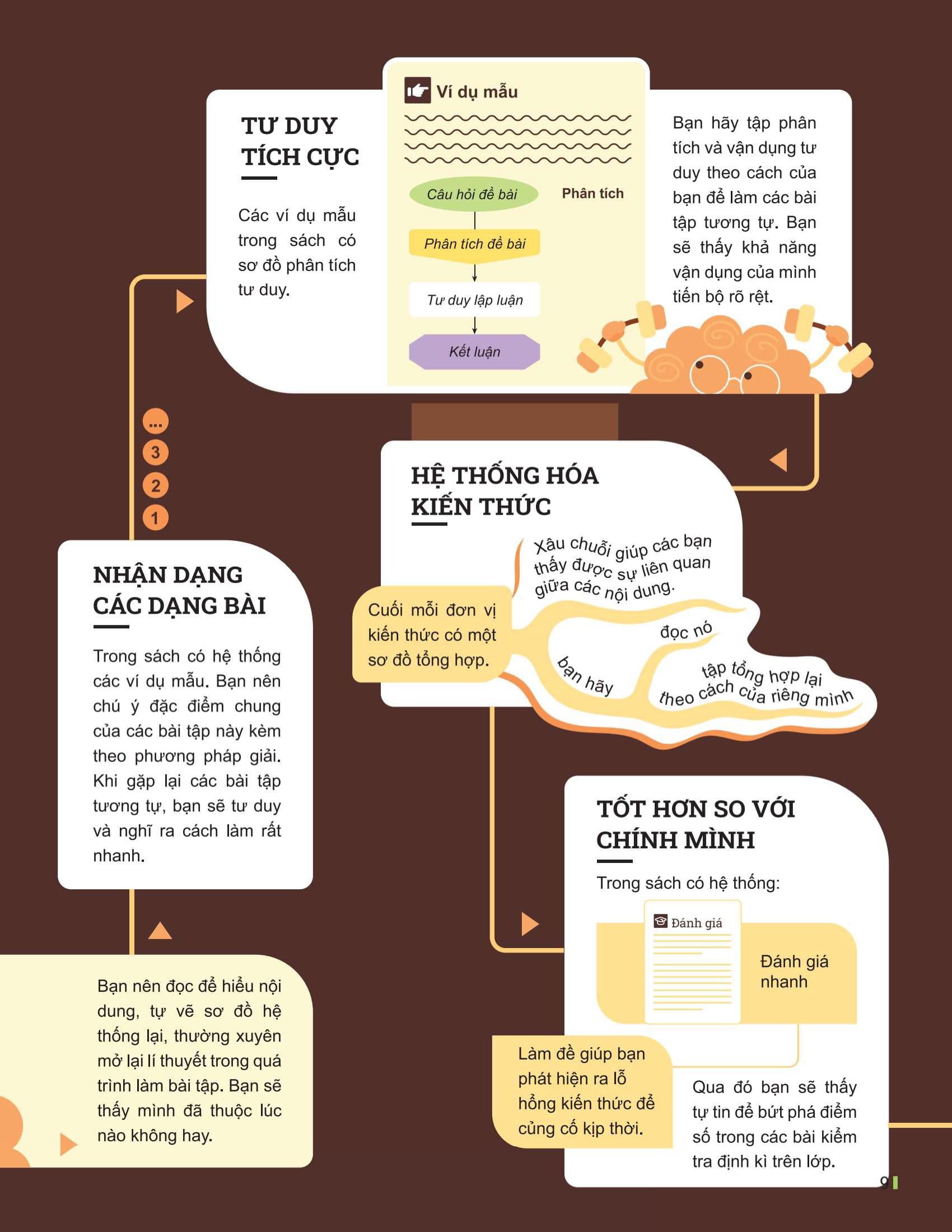 Mỗi phần lí thuyết khô khan trở nên dễ hiểu và thú vị hơn nhờ các infographic sinh động. Bạn sẽ cảm nhận được sự khác biệt ngay từ lần đầu mở sách, khi kiến thức hiện ra một cách trực quan, dễ nhớ và đầy màu sắc.