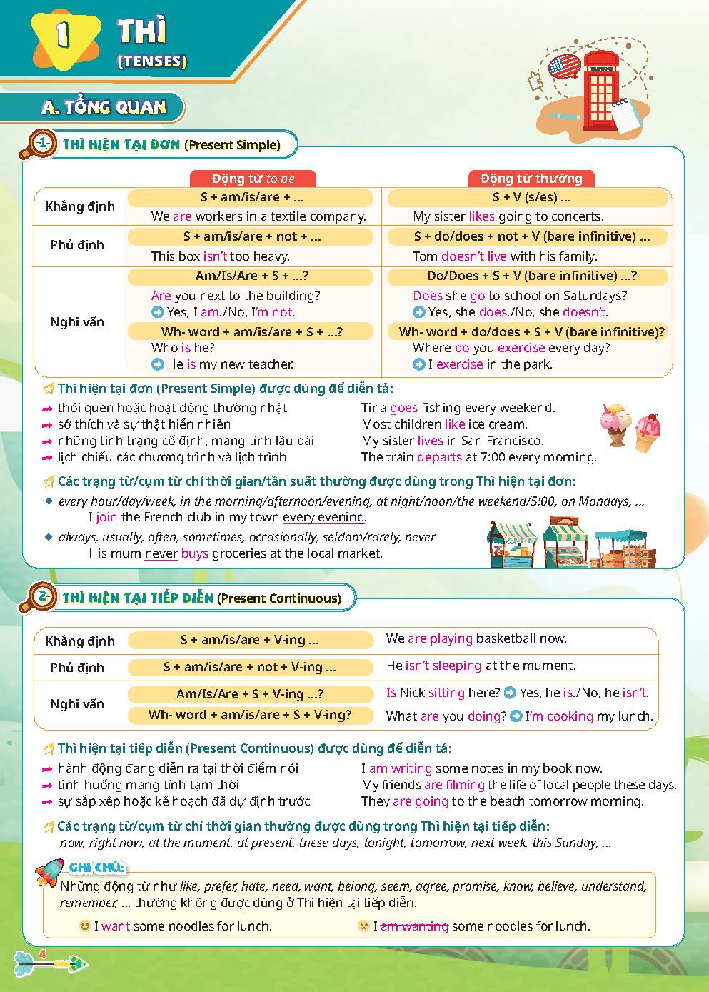 • Đúng trọng tâm các chủ điểm từ vựng, ngữ pháp, ngữ âm​