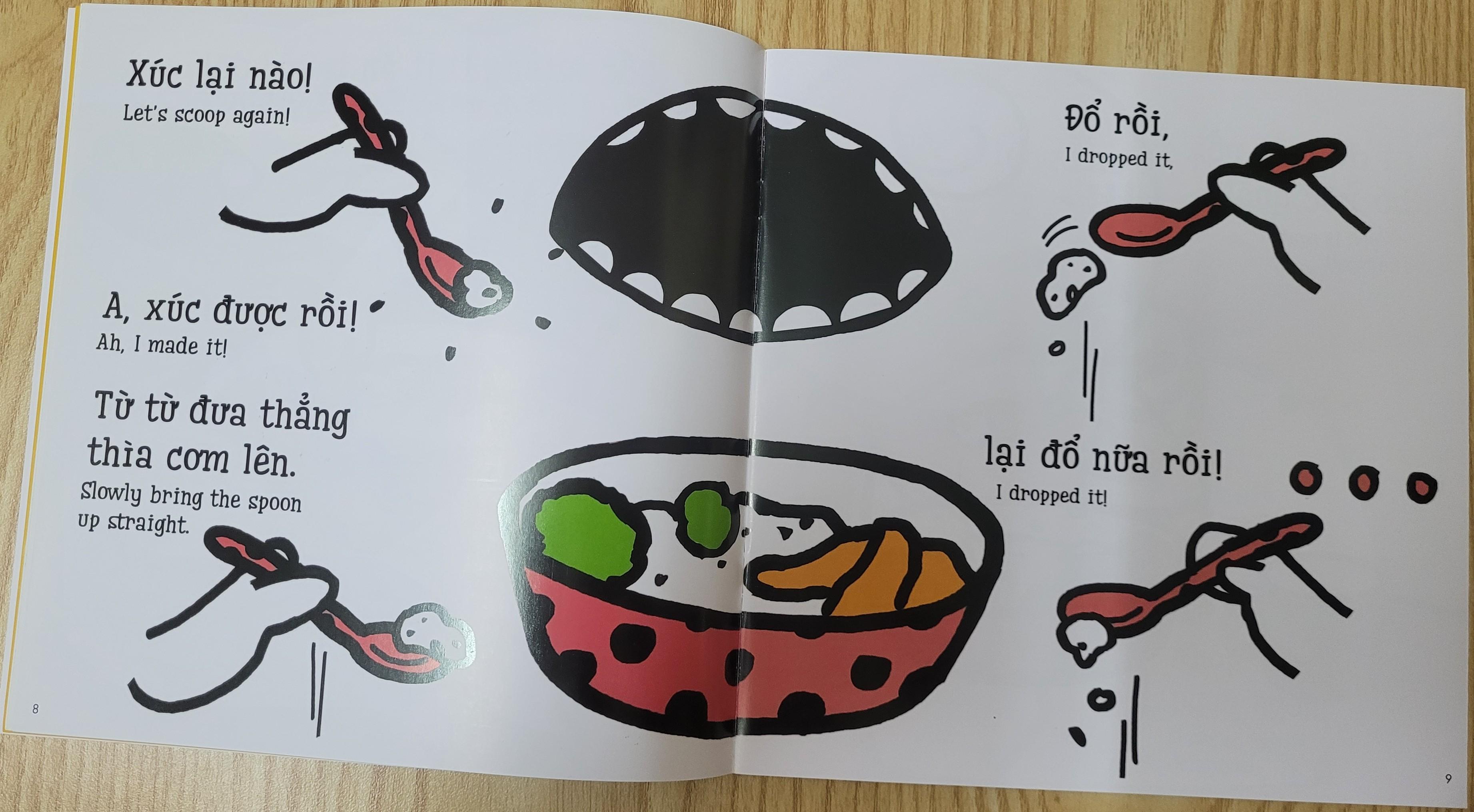 ✨Sách Ehon Miu Miu Tự Lập Phần 1 Song Ngữ - Xúc Cơm Ăn