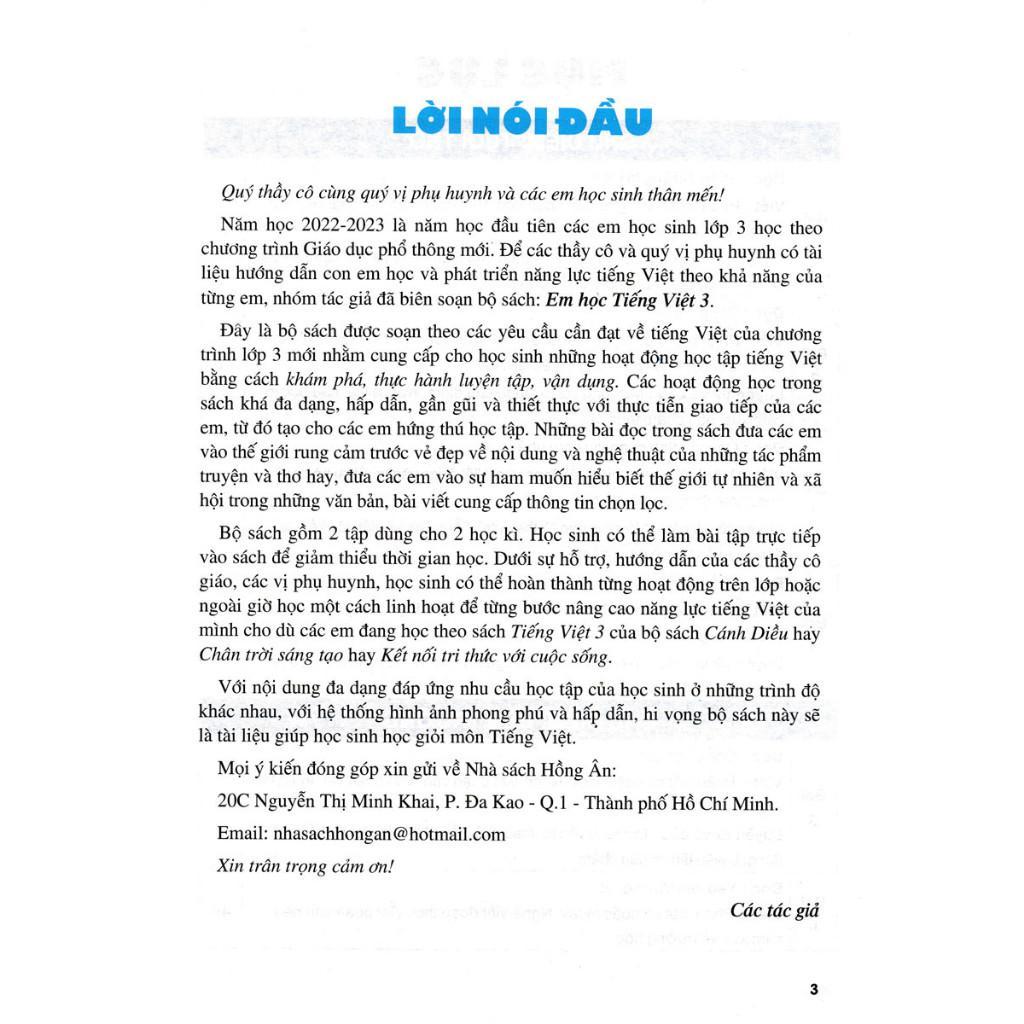 Năm học 2022-2023 là năm học đầu tiên các em học sinh lớp 3 học theo chương trình Giáo dục phổ thông mới. Để các thầy cô và quý vị phụ huynh có tài liệu hướng dẫn con em học và phát triển năng lực tiếng Việt theo khả năng của từng em, nhóm tác giả đã biên soạn bộ sách: Em Học Tiếng Việt 3 (Biên Soạn Theo Chương Trình GDPT Mới).