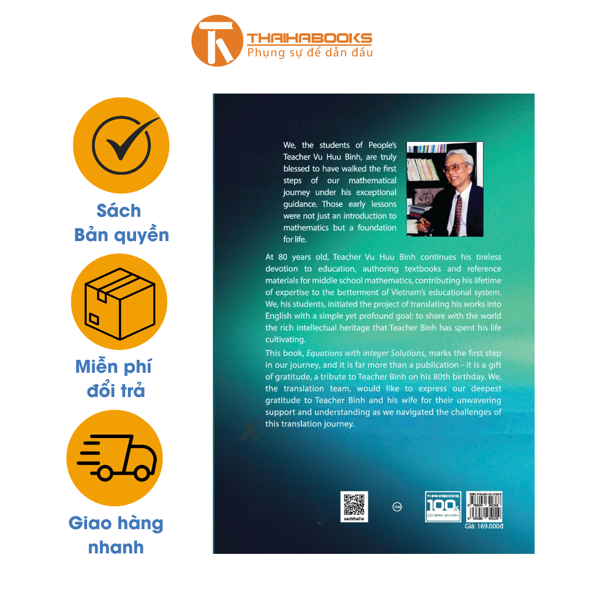 Tên sách EQUATIONS WITH INTEGER SOLUTIONS Tác giả Vu Huu Binh Số trang 152 trang Nhà xuất bản ĐHQGHN Khổ 18 x 25,5cm Barcode 8935280919129 – 9786044342368 EQUATIONS WITH INTEGER SOLUTIONS Vu Huu Binh Phương trình nghiệm nguyên là một chủ đề quan trọng trong Toán học, đòi hỏi sự kết hợp giữa kiến thức Số học và Đại số, đồng thời rèn luyện tư duy logic và khả năng giải quyết vấn đề. Thái Hà Books trân trọng giới thiệu cuốn sách "Equations with Integer Solutions" (Các phương trình nghiệm nguyên) của Nhà giáo Nhân dân Vũ Hữu Bình, một tài liệu học thuật được biên soạn hoàn toàn bằng tiếng Anh. Nhà giáo Nhân dân Vũ Hữu Bình là một tên tuổi có uy tín trong nền giáo dục toán học Việt Nam. Trong suốt sự nghiệp của mình, Thầy đã có những đóng góp to lớn trong việc giảng dạy và bồi dưỡng học sinh giỏi, với nhiều học trò đạt giải cao trong các kỳ thi quốc tế. Cuốn sách sẽ dẫn dắt bạn qua: - Các phương pháp giải Phương trình nghiệm nguyên một cách có hệ thống: Phương pháp phổ biến để giải bao gồm xét tính chia hết, sử dụng bất đẳng thức và áp dụng các tính chất của số chính phương,... - Phân loại các dạng phương trình nghiệm nguyên: Phân loại các phương trình nghiệm nguyên theo từng dạng cụ thể, giúp người đọc có cái nhìn tổng quan và hệ thống về chủ đề này. - Ứng dụng của phương trình nghiệm nguyên trong các bài toán: Các bài toán có thể quy về giải phương trình nghiệm nguyên, bao gồm nhiều bài toán thú vị và ứng dụng thực tế." - Các Phương trình nghiệm nguy nổi tiếng: Các phương trình nghiệm nguyên được đặt tên theo các nhà toán học. - Kinh nghiệm giải toán: Cuốn sách dành nhiều không gian để chia sẻ kinh nghiệm giải phương trình nghiệm nguyên, giúp người đọc phát triển các kỹ năng suy luận cần thiết cho học tập và nghiên cứu. Cuốn sách này là một nguồn tài liệu tham khảo giá trị cho học sinh, sinh viên, giáo viên và những người nghiên cứu Toán học