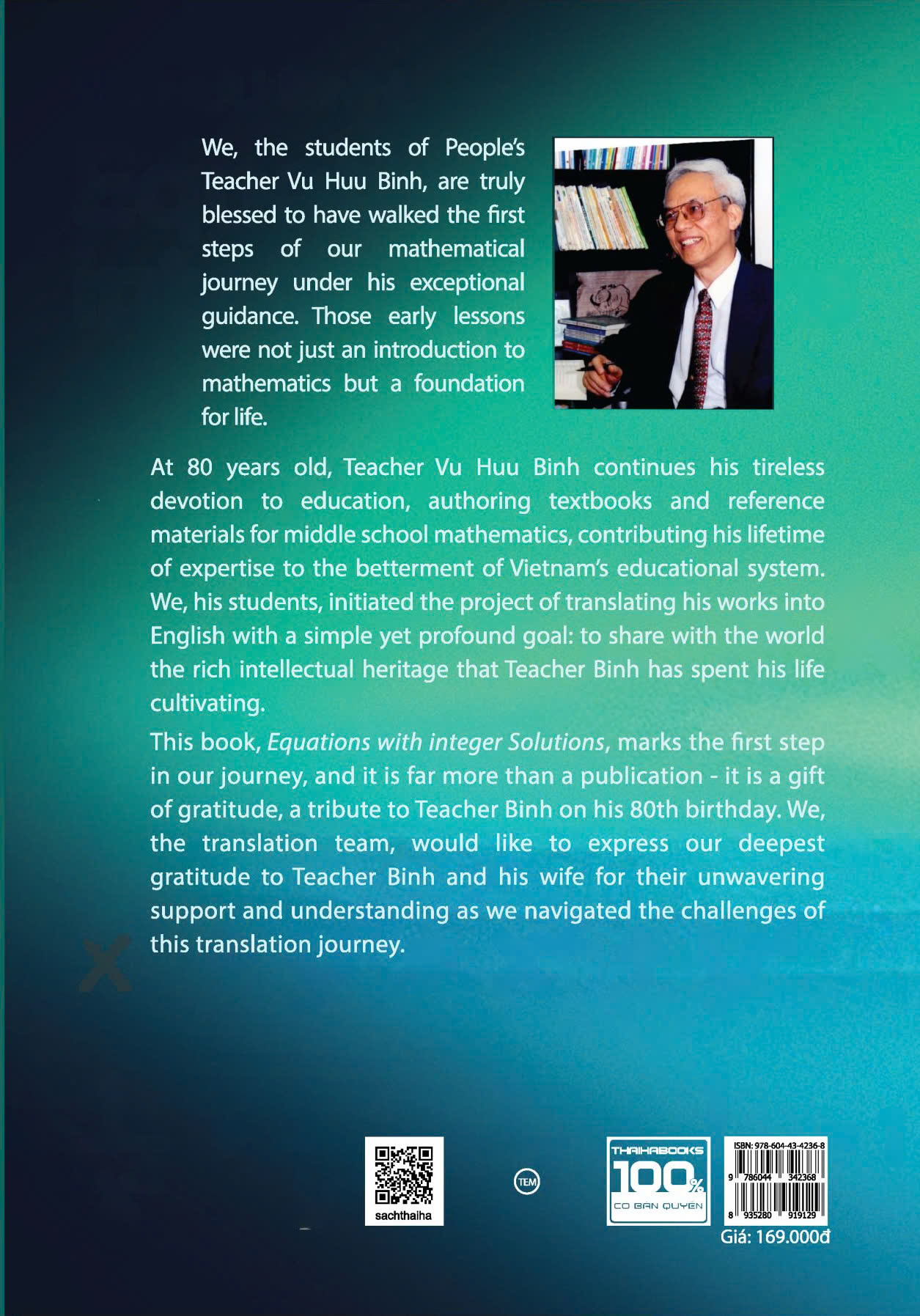 Phương trình nghiệm nguyên là một chủ đề quan trọng trong Toán học, đòi hỏi sự kết hợp giữa kiến thức Số học và Đại số, đồng thời rèn luyện tư duy logic và khả năng giải quyết vấn đề. Thái Hà Books trân trọng giới thiệu cuốn sách "Equations with Integer Solutions" (Các phương trình nghiệm nguyên) của Nhà giáo Nhân dân Vũ Hữu Bình, một tài liệu học thuật được biên soạn hoàn toàn bằng tiếng Anh.