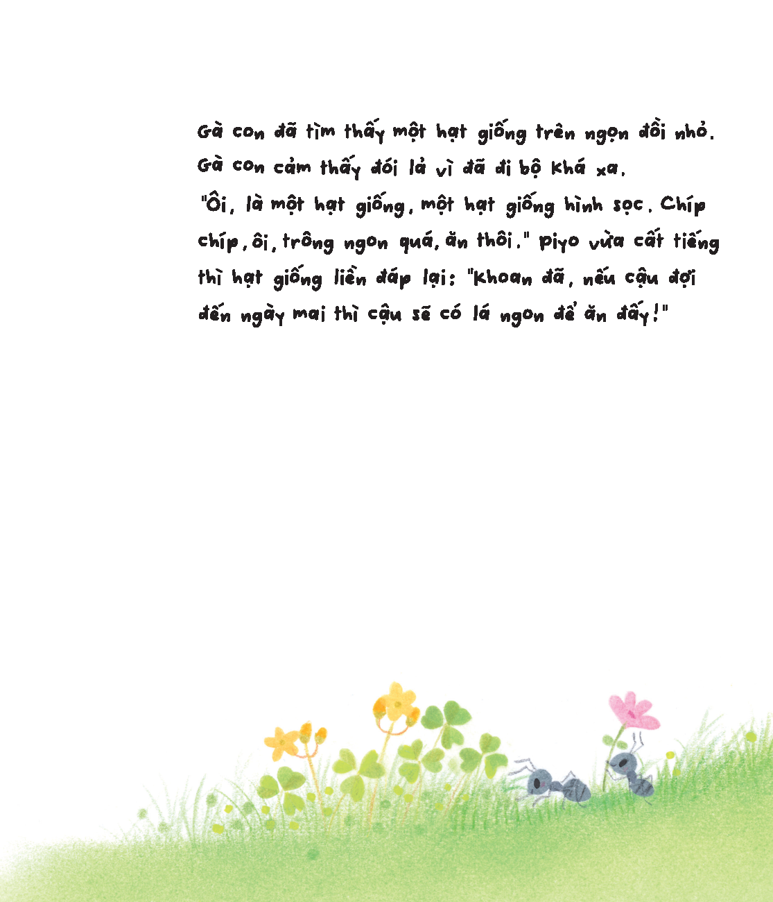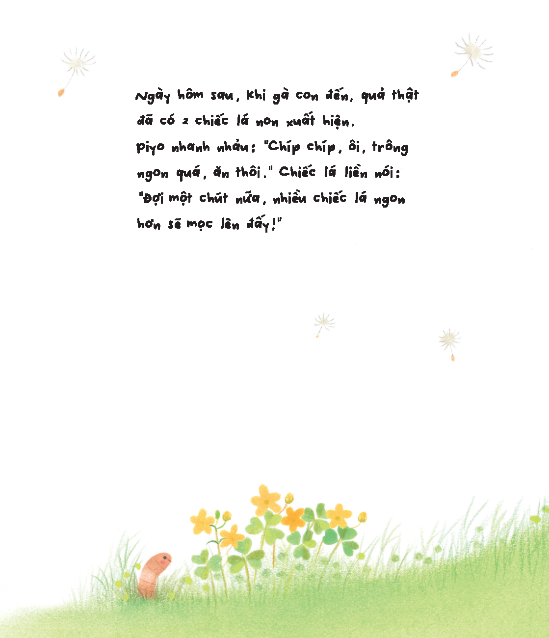 Mua tại TiktokTóm tắt nội dung Gà con trở thành bạn tốt với hoa hướng dương xinh đẹp. Thế nhưng khi mùa hè qua đi, hoa hướng dương cũng rũ xuống và nói lời tạm biệt với Gà con. Quyển sách sẽ cho bé suy ngẫm về tình bạn và cuộc sống.