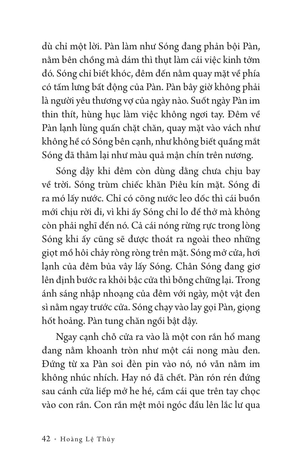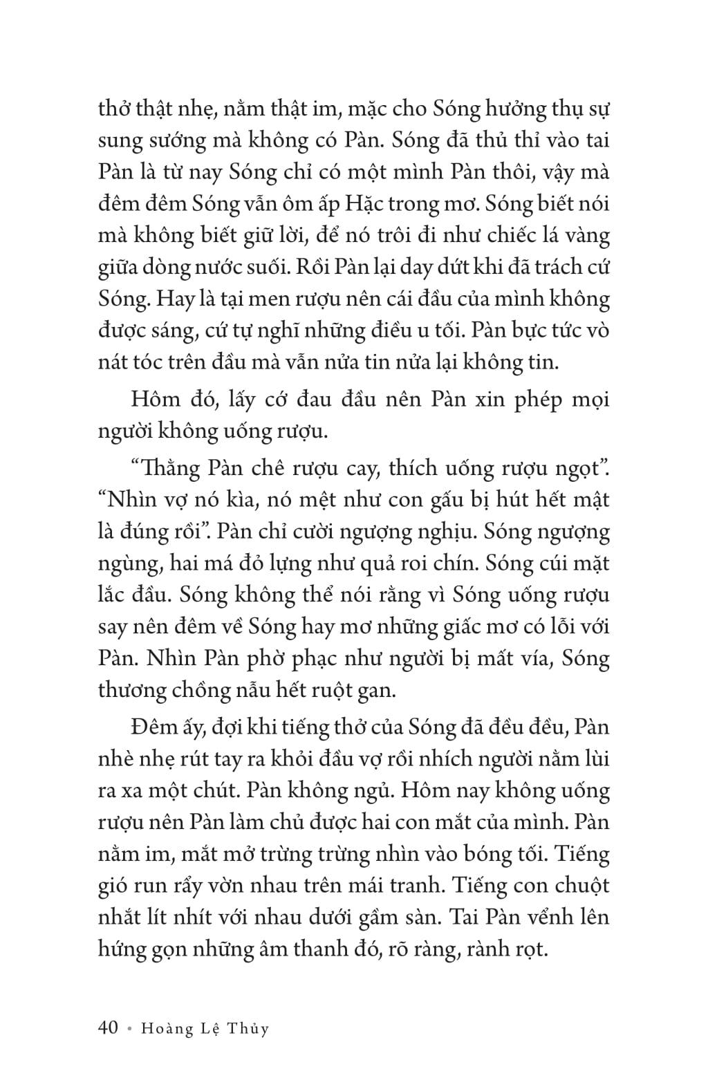 – Về tác giả – Nhà văn Hoàng Lệ Thủy, tên thật là Hoàng Thị Thủy, sinh năm 1969 tại Thanh Hóa, hiện công tác tại Bệnh viện Y Dược cổ truyền tỉnh Sơn La. Là hội viên Hội Liên hiệp Văn học Nghệ thuật tỉnh Sơn La; hội viên Hội Văn học nghệ thuật các dân tộc thiểu số Việt Nam. Các tác phẩm đã xuất bản: “Cánh bướm bạc” (Tập truyện ngắn); “Giữa sóng” (Thơ). Tác giả bắt đầu sáng tác từ năm 1994 với niềm yêu thích văn chương, mong muốn được chuyển tải những thông điệp trong cuộc sống đến bạn đọc, đặc biệt là thông điệp về người phụ nữ.