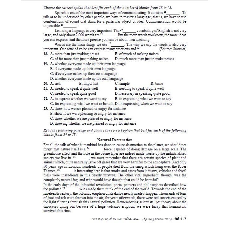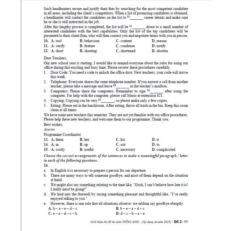 Đề thi tốt nghiệp tiếng Anh THPT 2025